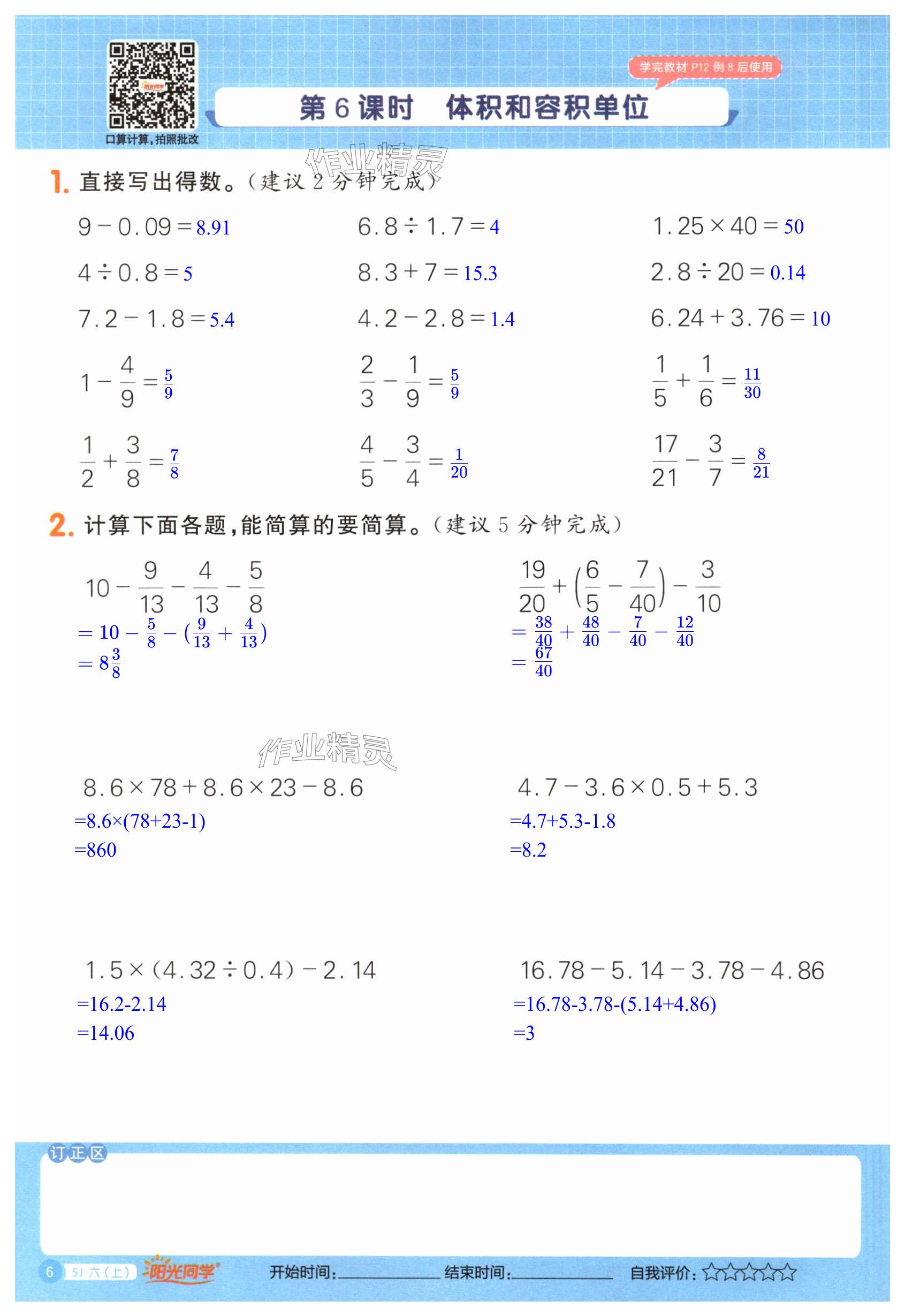《2024年阳光同学计算小达人六年级数学上册苏教版》