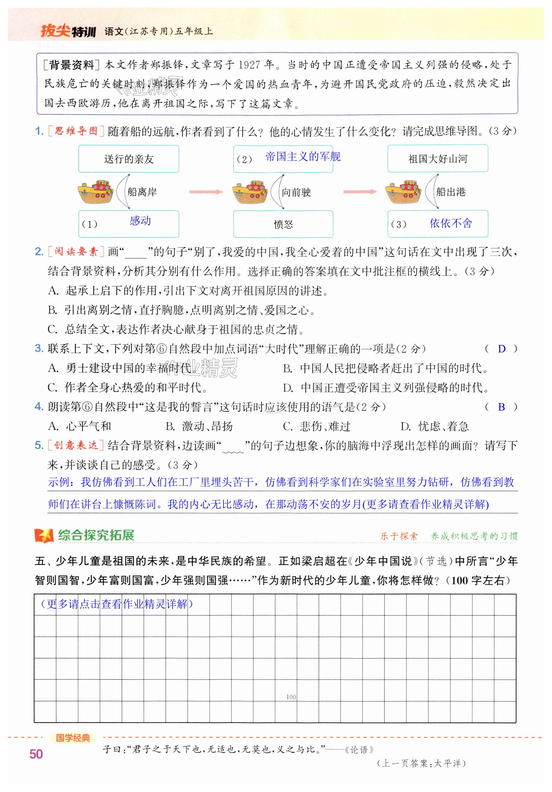注:目前有些书本章节名称可能整理的还不是很完善,但都是按照顺序排列的,请同学们按照顺序仔细查找。练习册 2024年拔尖特训五年级语文上册人教版江苏专版 答案主要是用来给同学们做完题方便对答案用的,请勿直接抄袭。