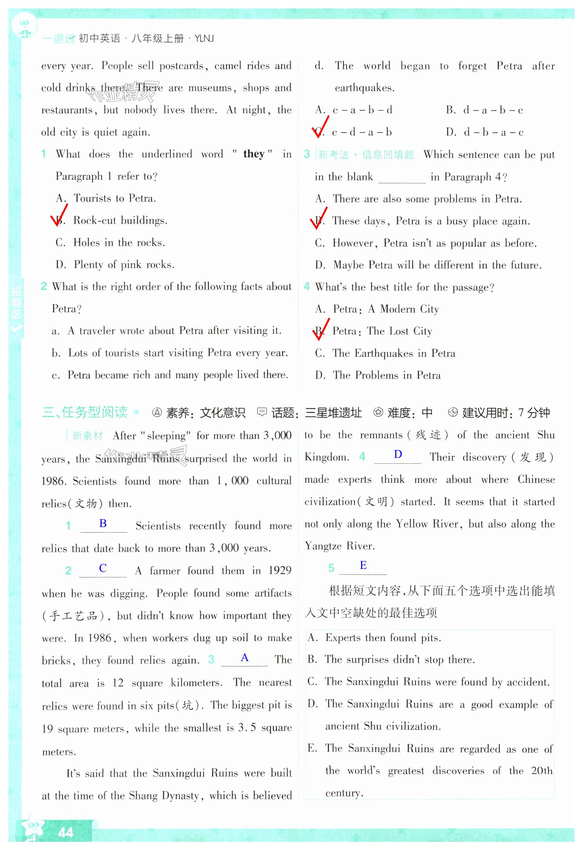 注:目前有些书本章节名称可能整理的还不是很完善,但都是按照顺序排列的,请同学们按照顺序仔细查找。练习册 2024年一遍过八年级初中英语上册译林版 答案主要是用来给同学们做完题方便对答案用的,请勿直接抄袭。