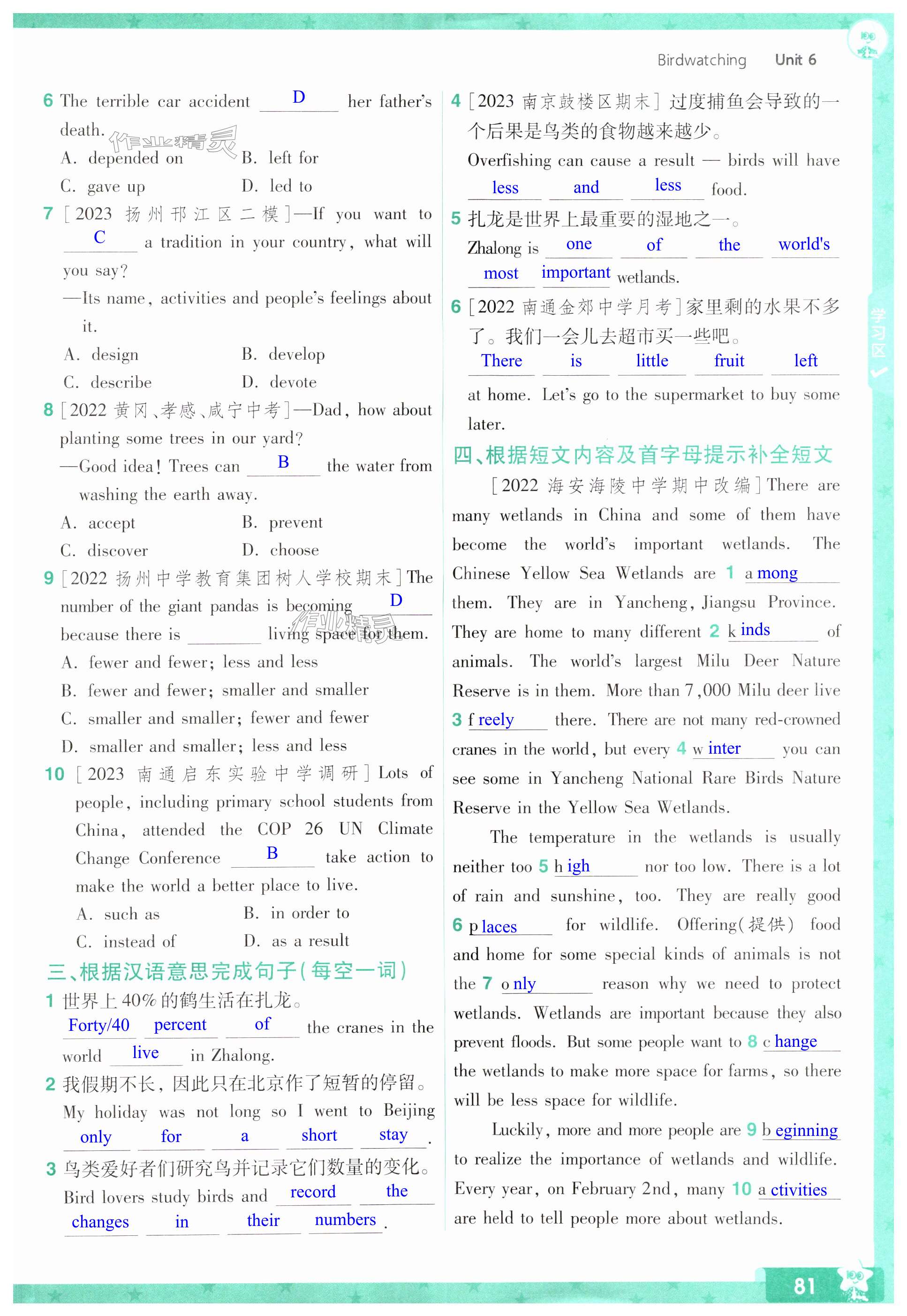 注:目前有些书本章节名称可能整理的还不是很完善,但都是按照顺序排列的,请同学们按照顺序仔细查找。练习册 2024年一遍过八年级初中英语上册译林版 答案主要是用来给同学们做完题方便对答案用的,请勿直接抄袭。