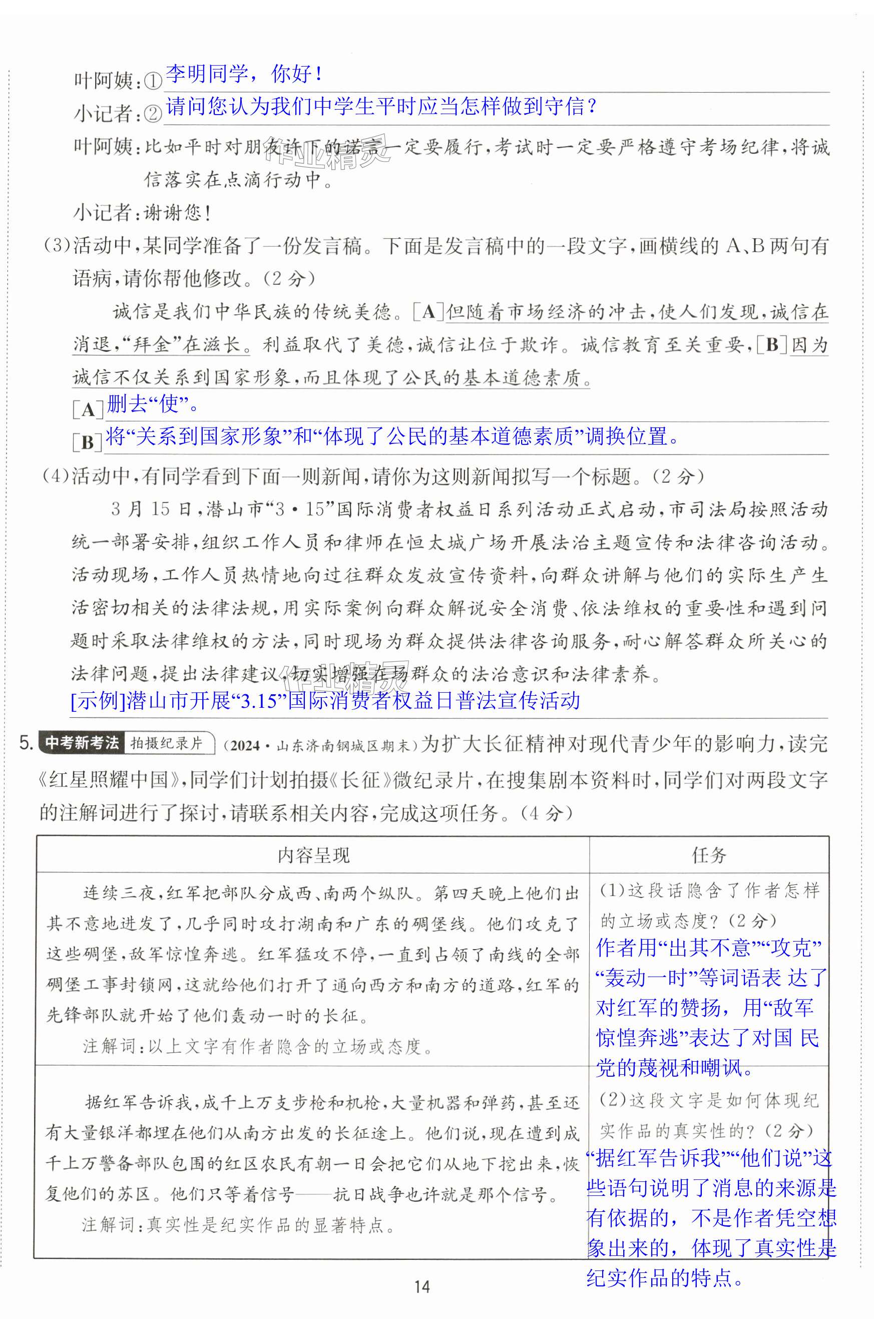 注:目前有些书本章节名称可能整理的还不是很完善,但都是按照顺序排列的,请同学们按照顺序仔细查找。练习册 2024年实验班提优训练八年级语文上册人教版江苏专版 答案主要是用来给同学们做完题方便对答案用的,请勿直接抄袭。