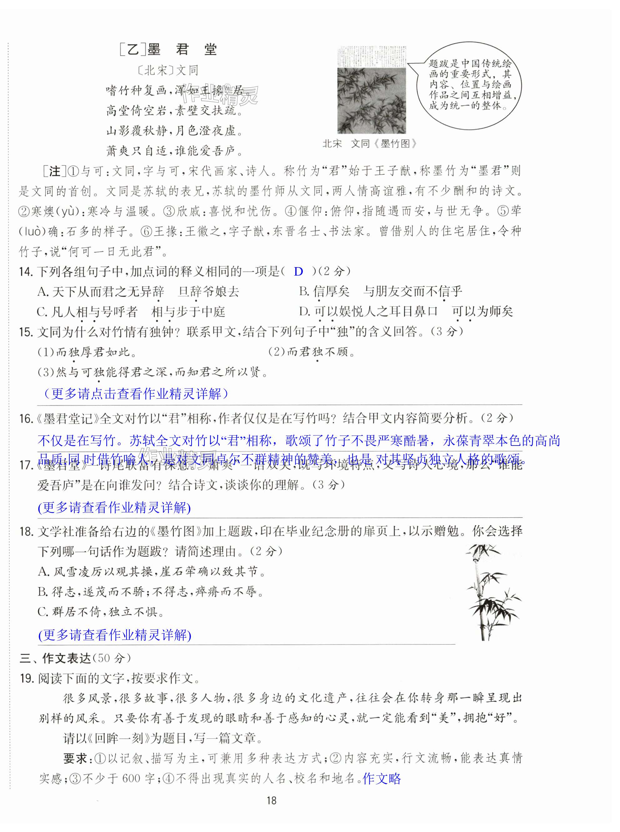 注:目前有些书本章节名称可能整理的还不是很完善,但都是按照顺序排列的,请同学们按照顺序仔细查找。练习册 2024年实验班提优训练八年级语文上册人教版江苏专版 答案主要是用来给同学们做完题方便对答案用的,请勿直接抄袭。