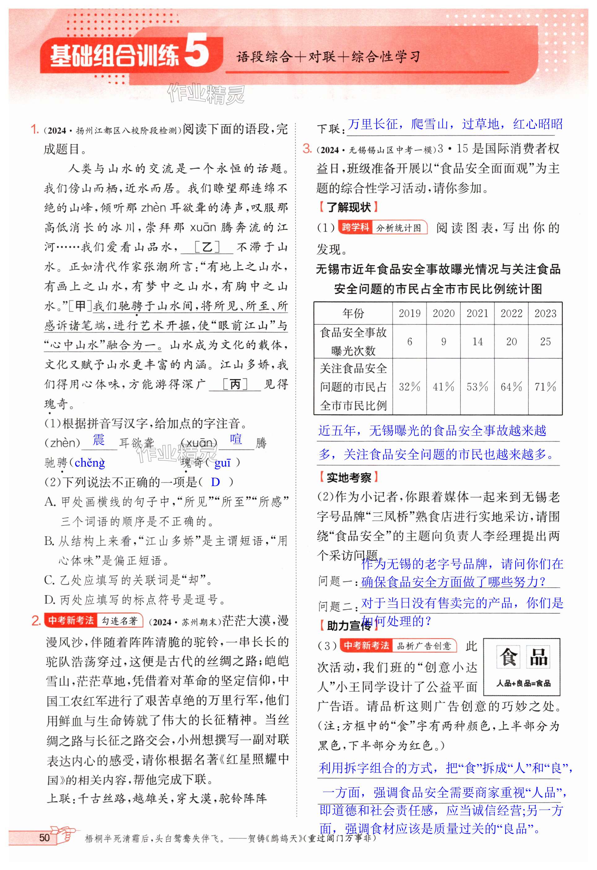 注:目前有些书本章节名称可能整理的还不是很完善,但都是按照顺序排列的,请同学们按照顺序仔细查找。练习册 2024年实验班提优训练八年级语文上册人教版江苏专版 答案主要是用来给同学们做完题方便对答案用的,请勿直接抄袭。