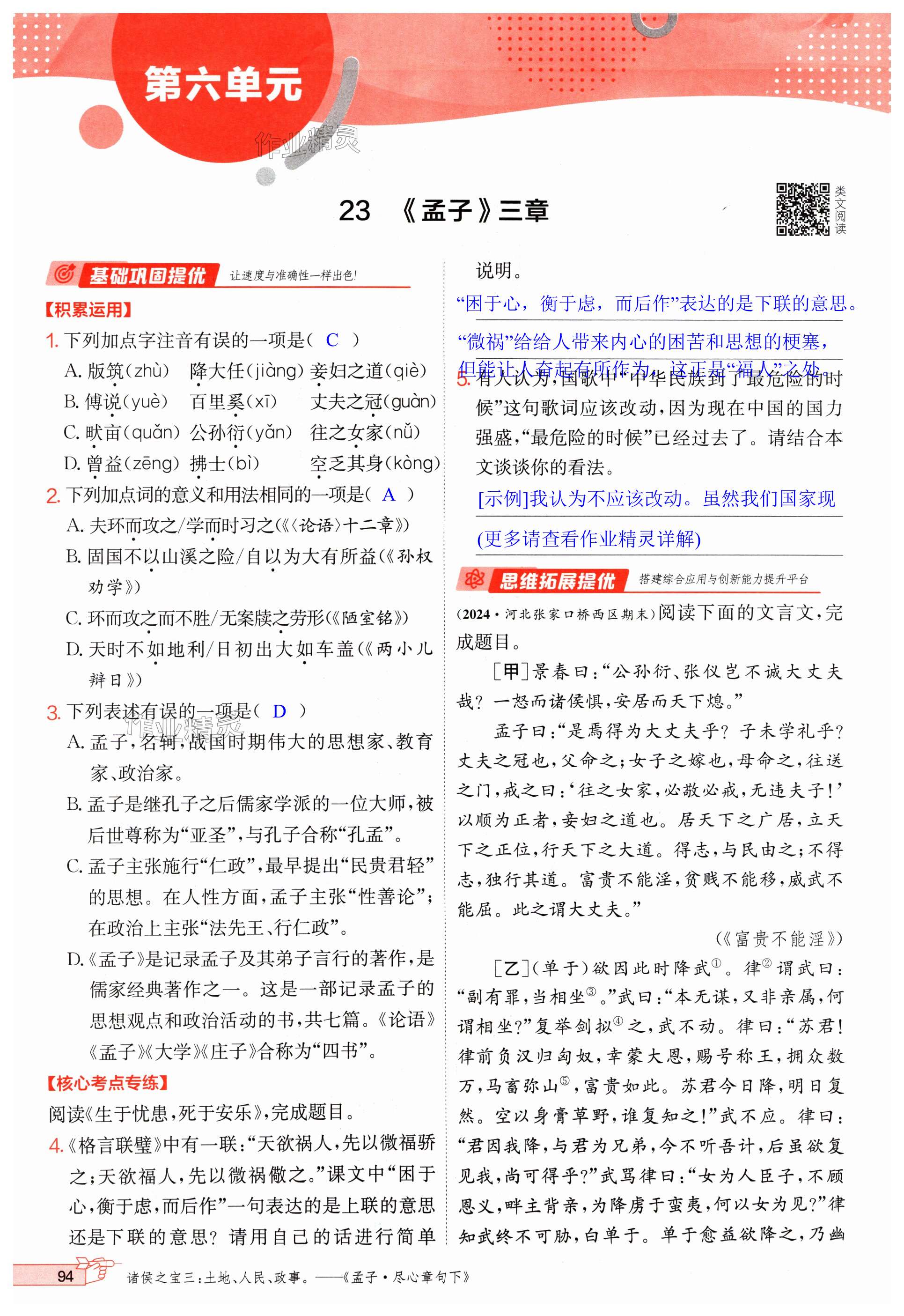 注:目前有些书本章节名称可能整理的还不是很完善,但都是按照顺序排列的,请同学们按照顺序仔细查找。练习册 2024年实验班提优训练八年级语文上册人教版江苏专版 答案主要是用来给同学们做完题方便对答案用的,请勿直接抄袭。