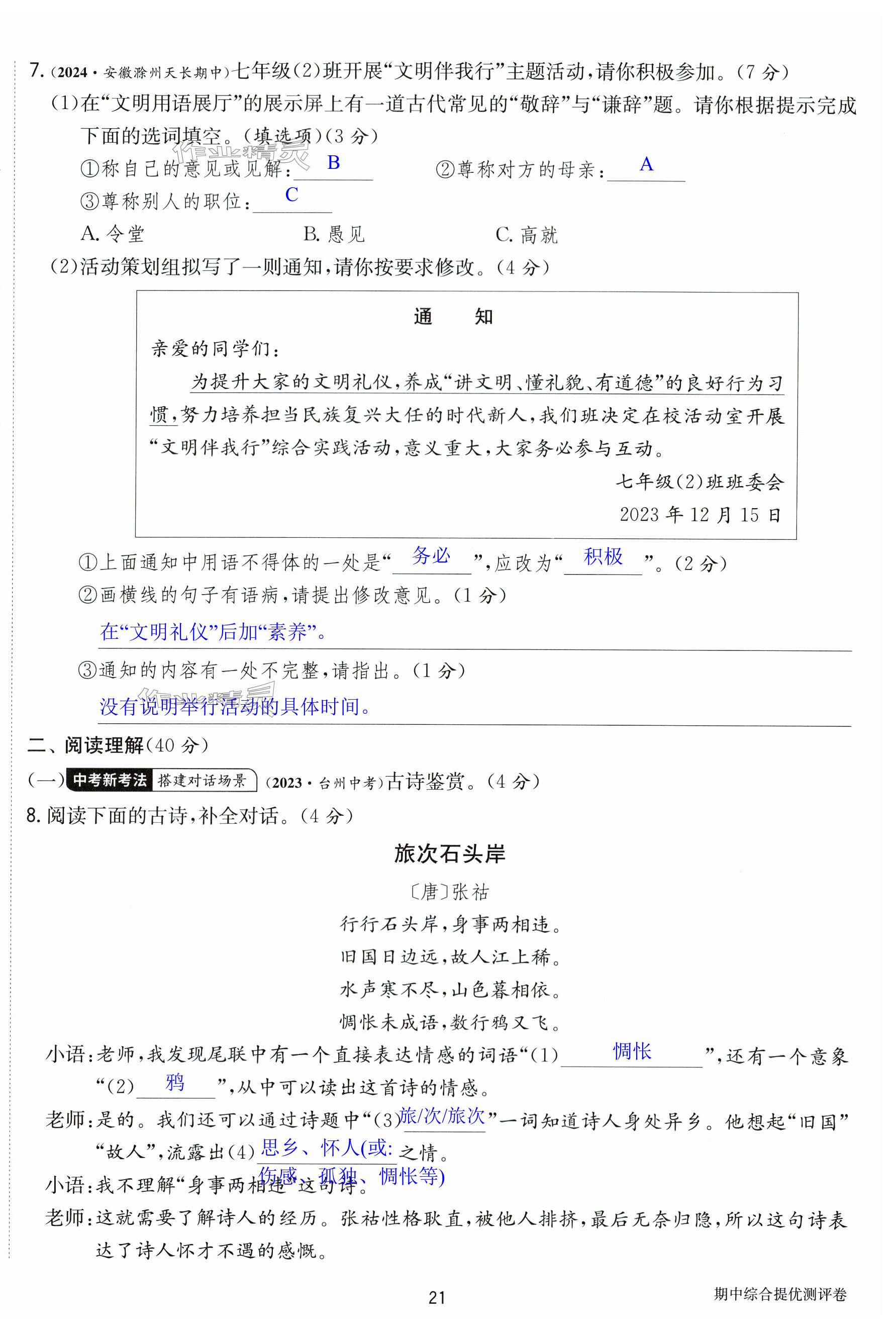 注:目前有些书本章节名称可能整理的还不是很完善,但都是按照顺序排列的,请同学们按照顺序仔细查找。练习册 2024年实验班提优训练七年级语文上册人教版江苏专版 答案主要是用来给同学们做完题方便对答案用的,请勿直接抄袭。