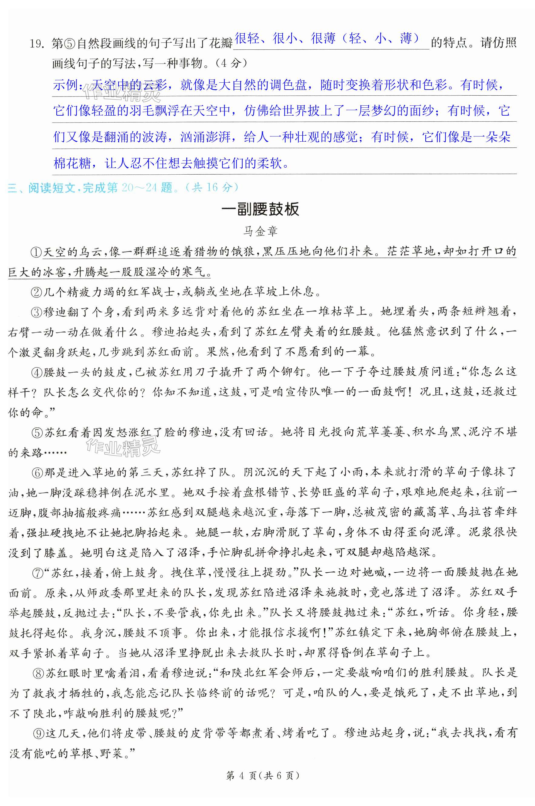注:目前有些书本章节名称可能整理的还不是很完善,但都是按照顺序排列的,请同学们按照顺序仔细查找。练习册 2024年实验班提优训练六年级语文上册人教版 答案主要是用来给同学们做完题方便对答案用的,请勿直接抄袭。