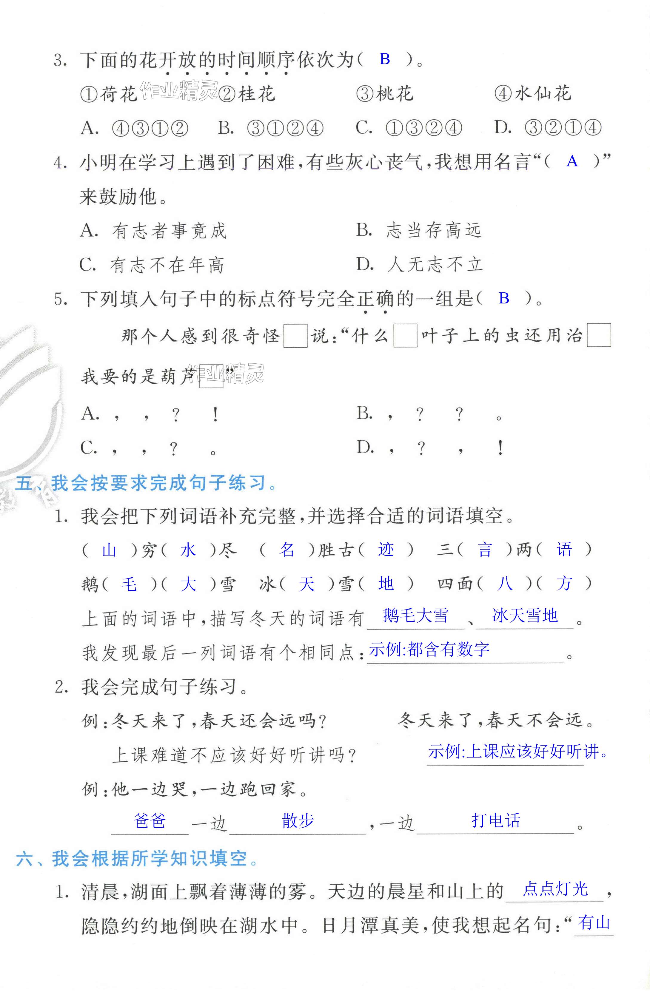 注:目前有些书本章节名称可能整理的还不是很完善,但都是按照顺序排列的,请同学们按照顺序仔细查找。练习册 2024年实验班提优训练二年级语文上册人教版 答案主要是用来给同学们做完题方便对答案用的,请勿直接抄袭。