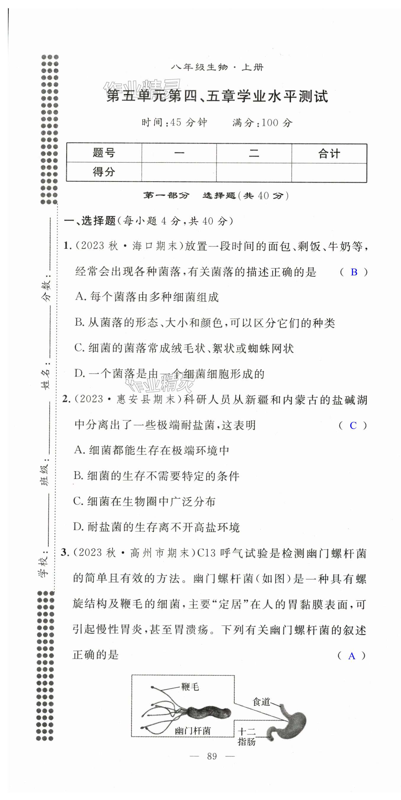 注:目前有些书本章节名称可能整理的还不是很完善,但都是按照顺序排列的,请同学们按照顺序仔细查找。练习册 2024年名师学案八年级生物上册人教版湖北专版 答案主要是用来给同学们做完题方便对答案用的,请勿直接抄袭。