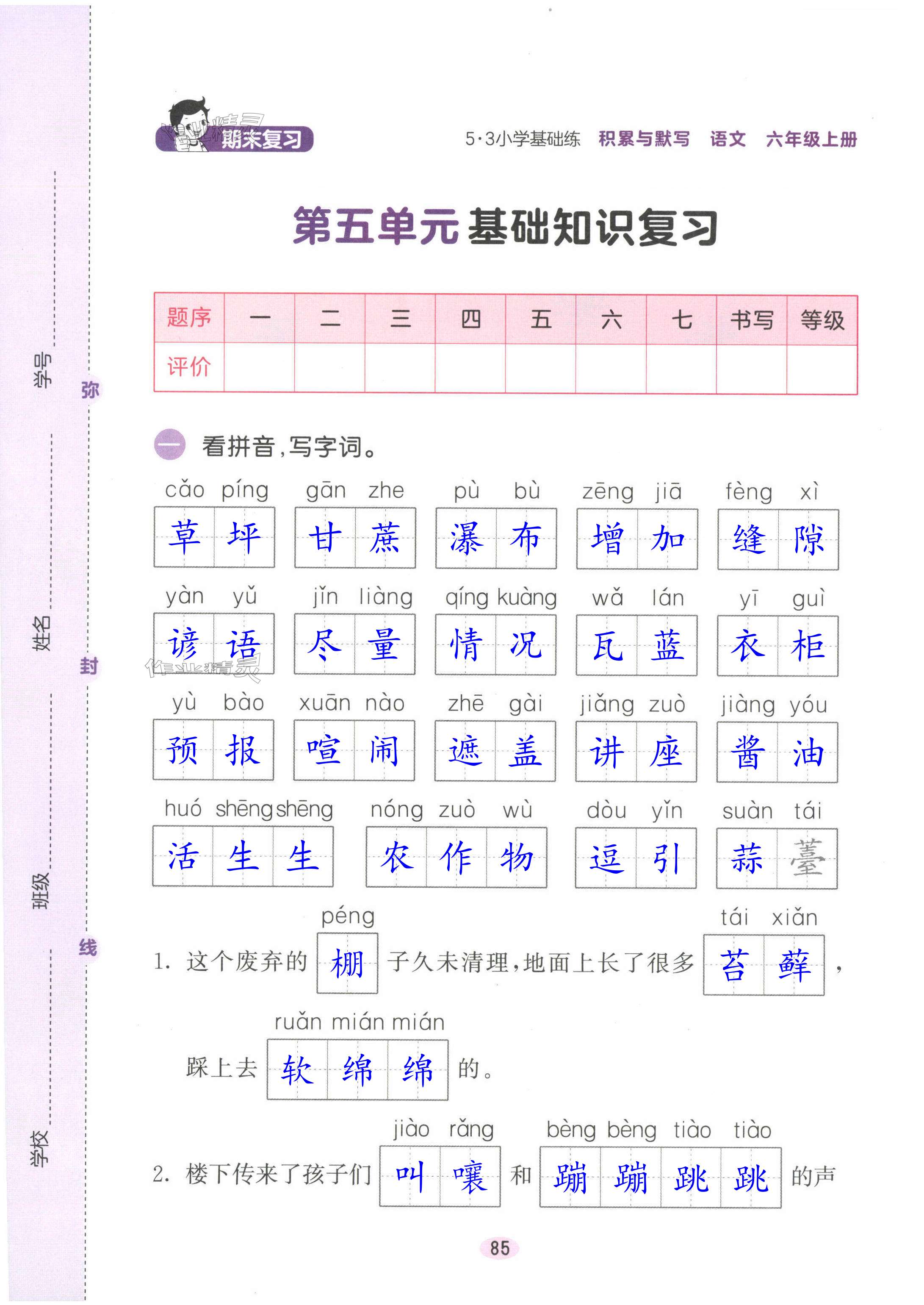 注:目前有些书本章节名称可能整理的还不是很完善,但都是按照顺序排列的,请同学们按照顺序仔细查找。练习册 2024年积累与默写首都师范大学出版社六年级语文上册人教版 答案主要是用来给同学们做完题方便对答案用的,请勿直接抄袭。