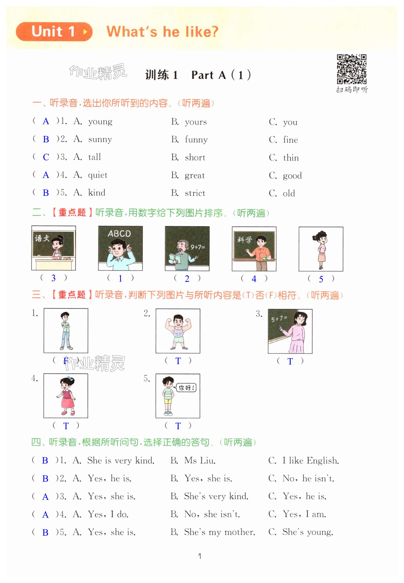 注:目前有些书本章节名称可能整理的还不是很完善,但都是按照顺序排列的,请同学们按照顺序仔细查找。练习册 2024年通城学典小学英语听力能手五年级上册人教PEP版 答案主要是用来给同学们做完题方便对答案用的,请勿直接抄袭。