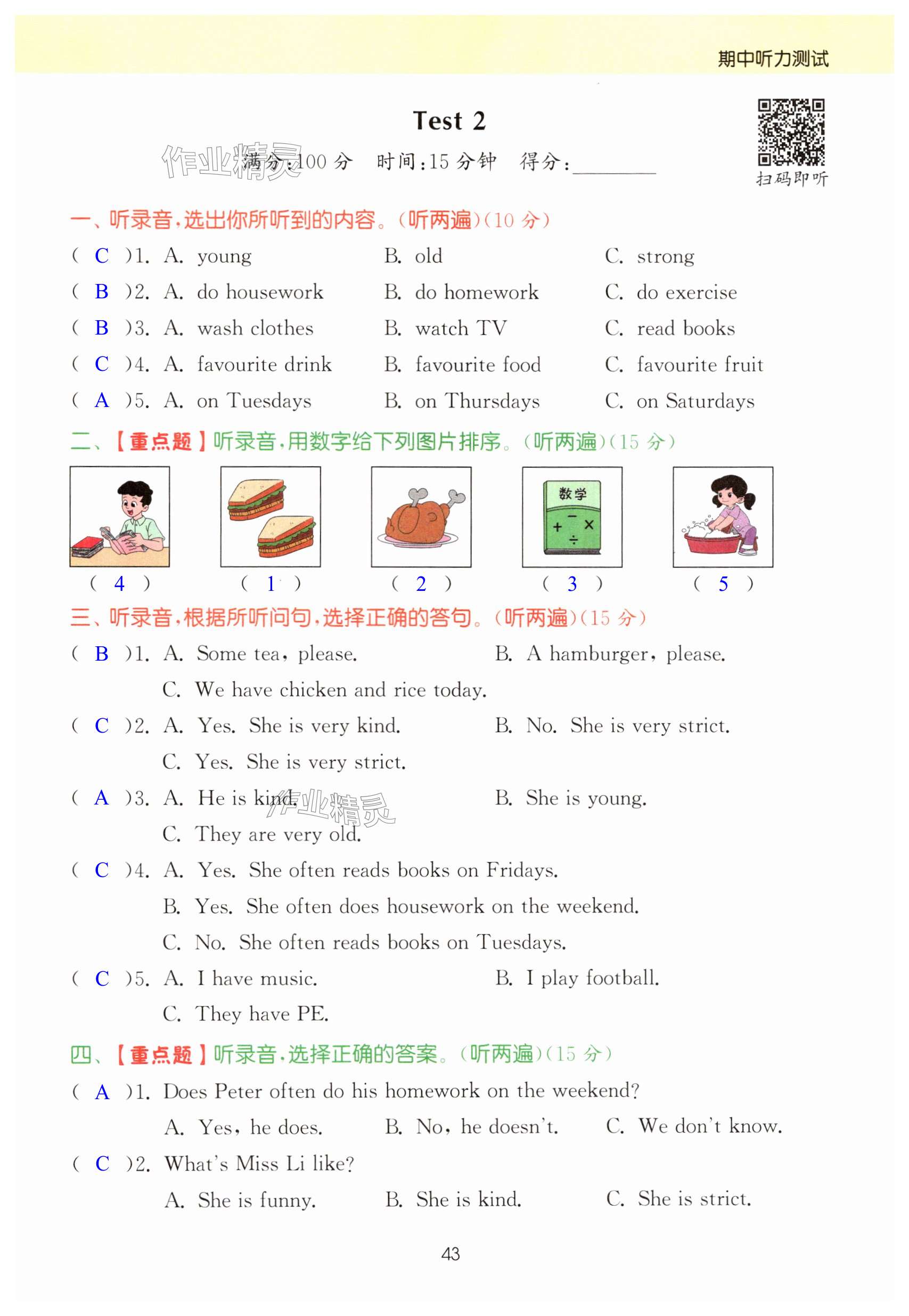 注:目前有些书本章节名称可能整理的还不是很完善,但都是按照顺序排列的,请同学们按照顺序仔细查找。练习册 2024年通城学典小学英语听力能手五年级上册人教PEP版 答案主要是用来给同学们做完题方便对答案用的,请勿直接抄袭。