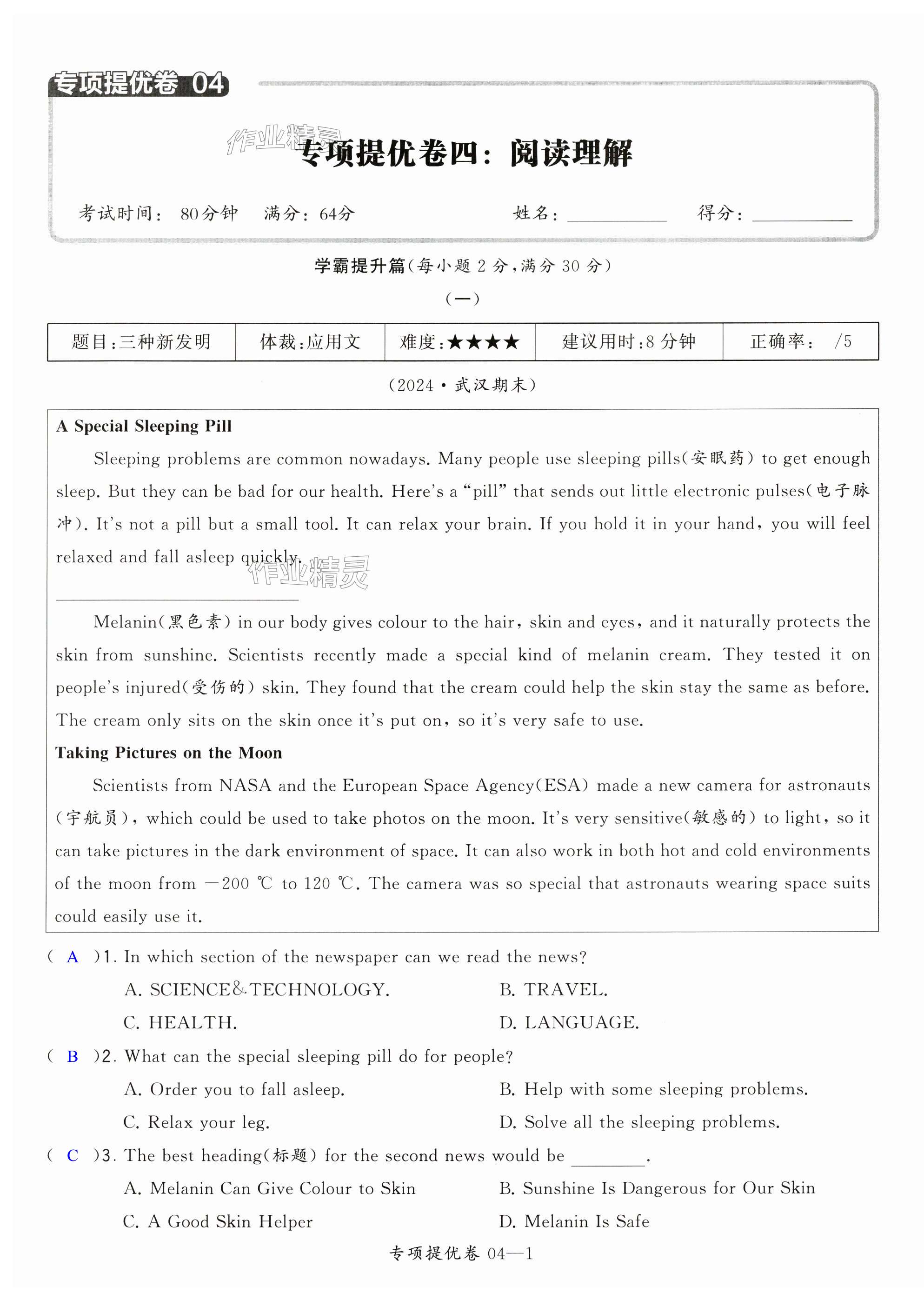 注:目前有些书本章节名称可能整理的还不是很完善,但都是按照顺序排列的,请同学们按照顺序仔细查找。练习册 2024年学霸提优大试卷八年级英语上册译林版 答案主要是用来给同学们做完题方便对答案用的,请勿直接抄袭。