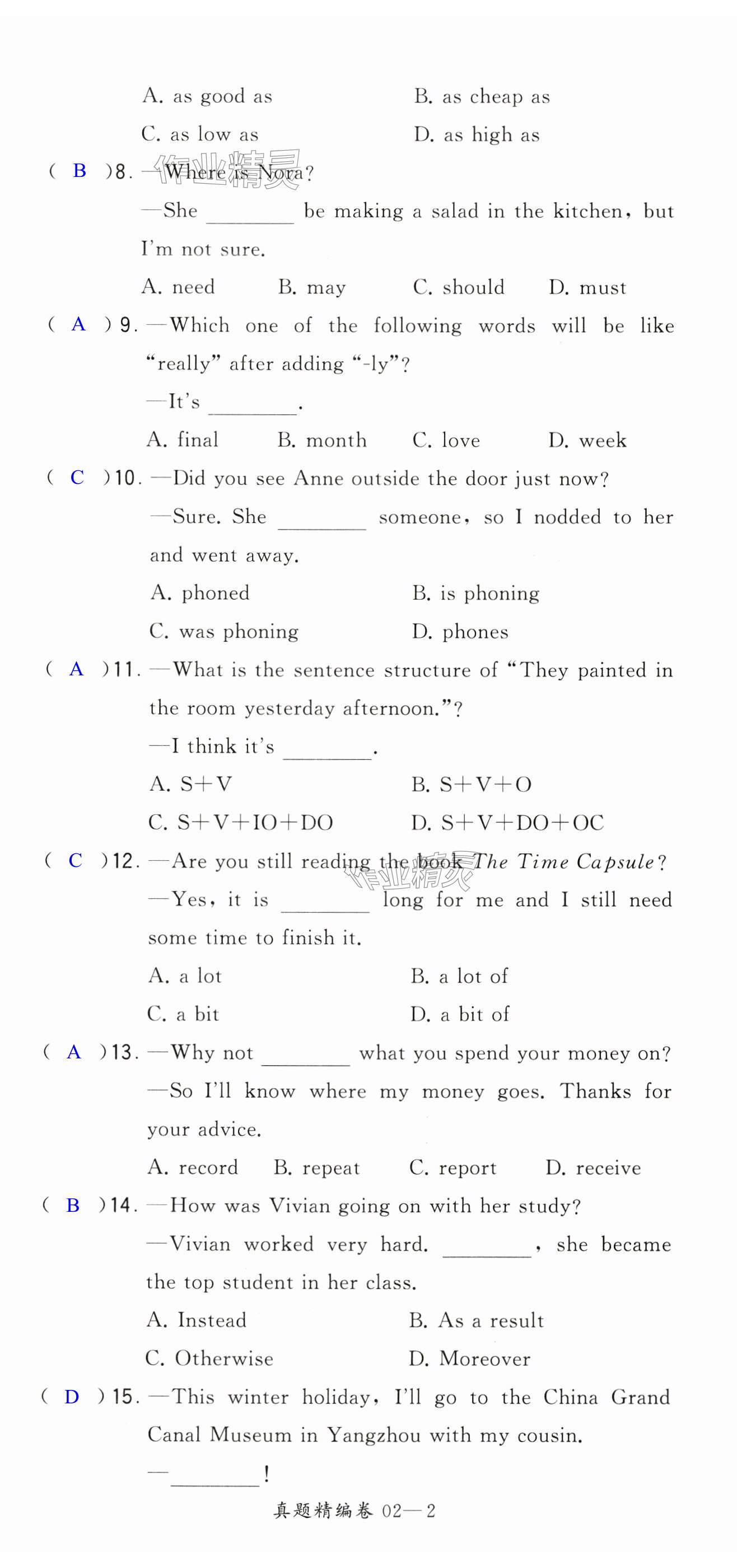 注:目前有些书本章节名称可能整理的还不是很完善,但都是按照顺序排列的,请同学们按照顺序仔细查找。练习册 2024年学霸提优大试卷八年级英语上册译林版 答案主要是用来给同学们做完题方便对答案用的,请勿直接抄袭。