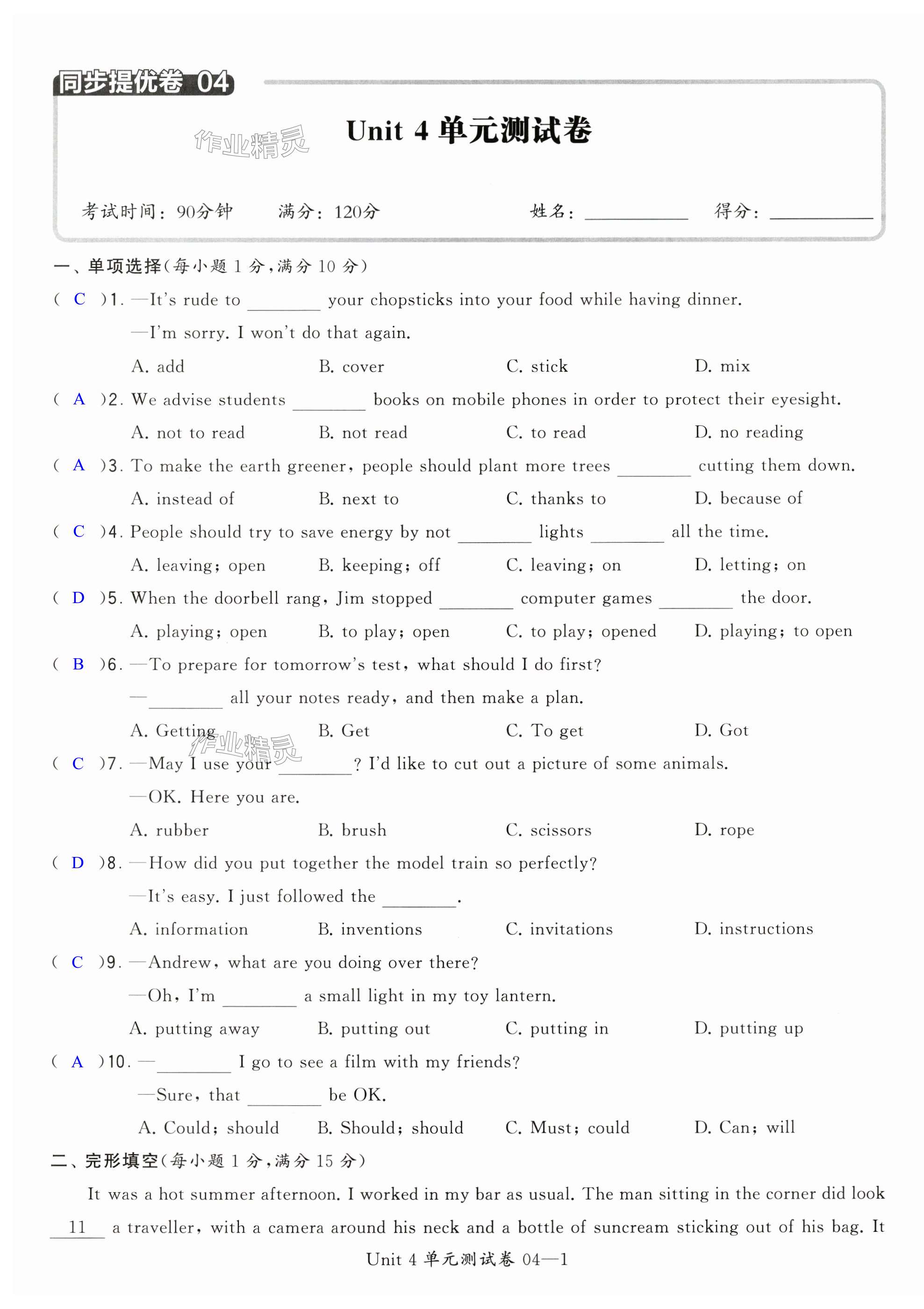 注:目前有些书本章节名称可能整理的还不是很完善,但都是按照顺序排列的,请同学们按照顺序仔细查找。练习册 2024年学霸提优大试卷八年级英语上册译林版 答案主要是用来给同学们做完题方便对答案用的,请勿直接抄袭。