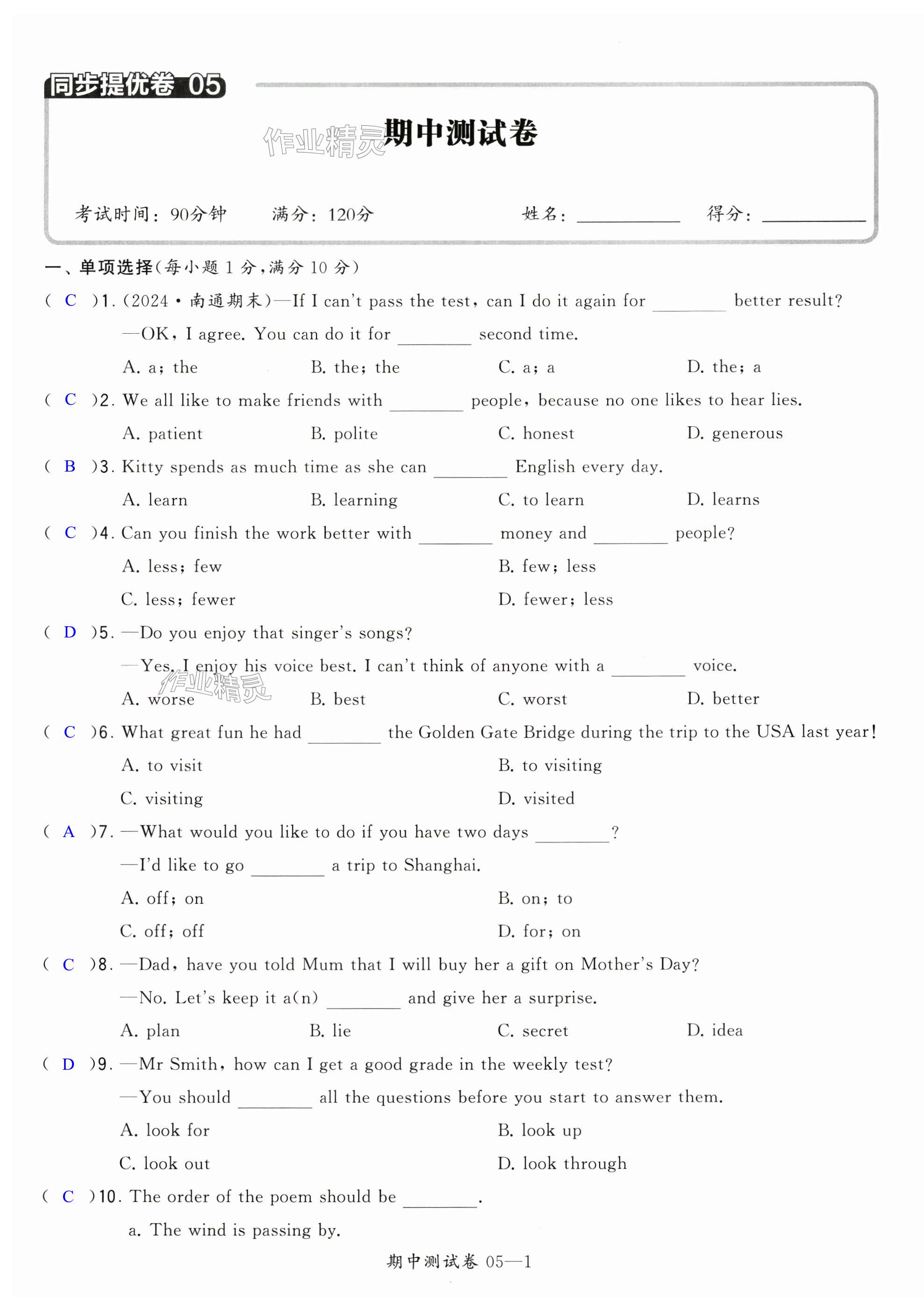 注:目前有些书本章节名称可能整理的还不是很完善,但都是按照顺序排列的,请同学们按照顺序仔细查找。练习册 2024年学霸提优大试卷八年级英语上册译林版 答案主要是用来给同学们做完题方便对答案用的,请勿直接抄袭。