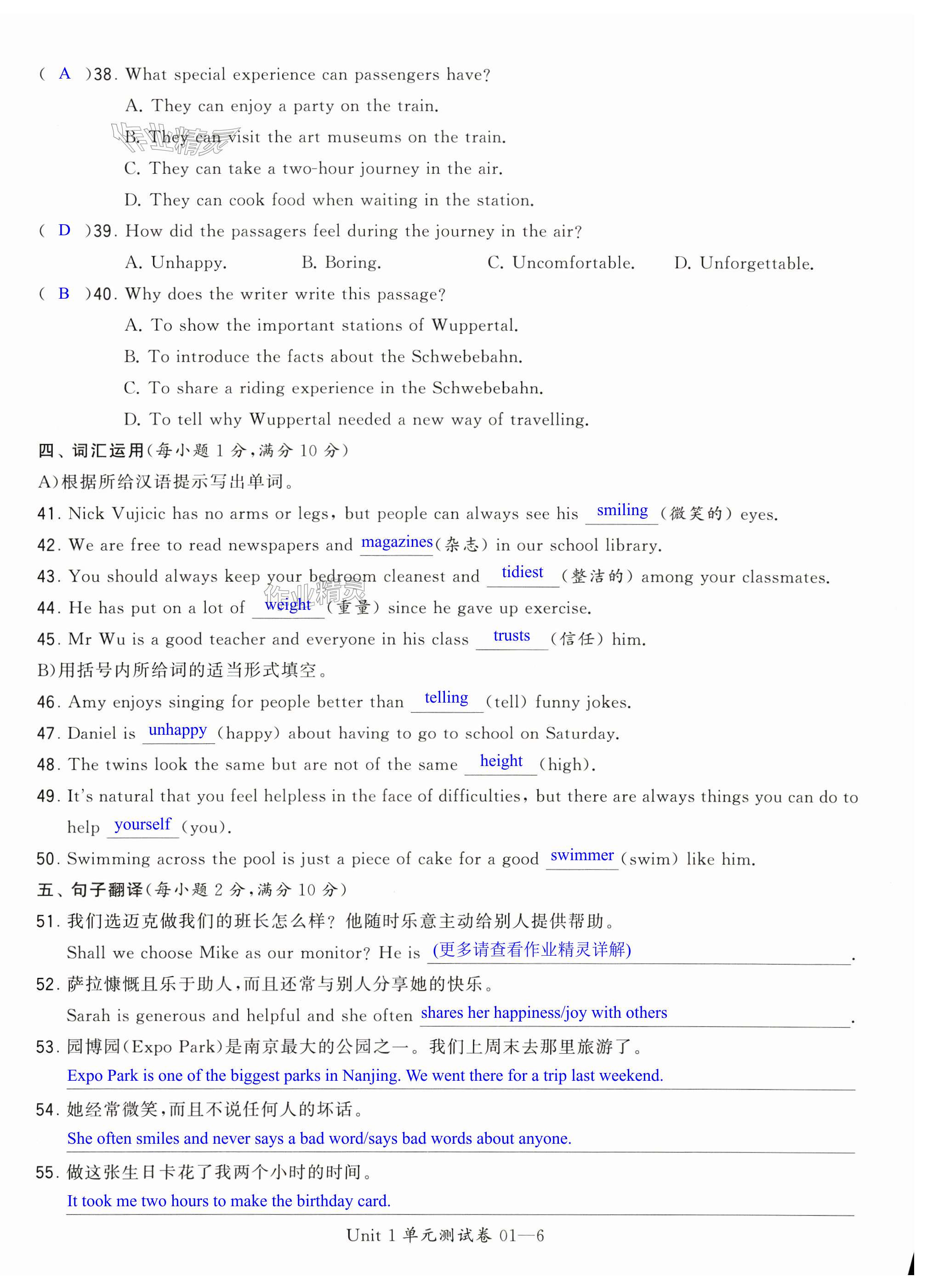 注:目前有些书本章节名称可能整理的还不是很完善,但都是按照顺序排列的,请同学们按照顺序仔细查找。练习册 2024年学霸提优大试卷八年级英语上册译林版 答案主要是用来给同学们做完题方便对答案用的,请勿直接抄袭。