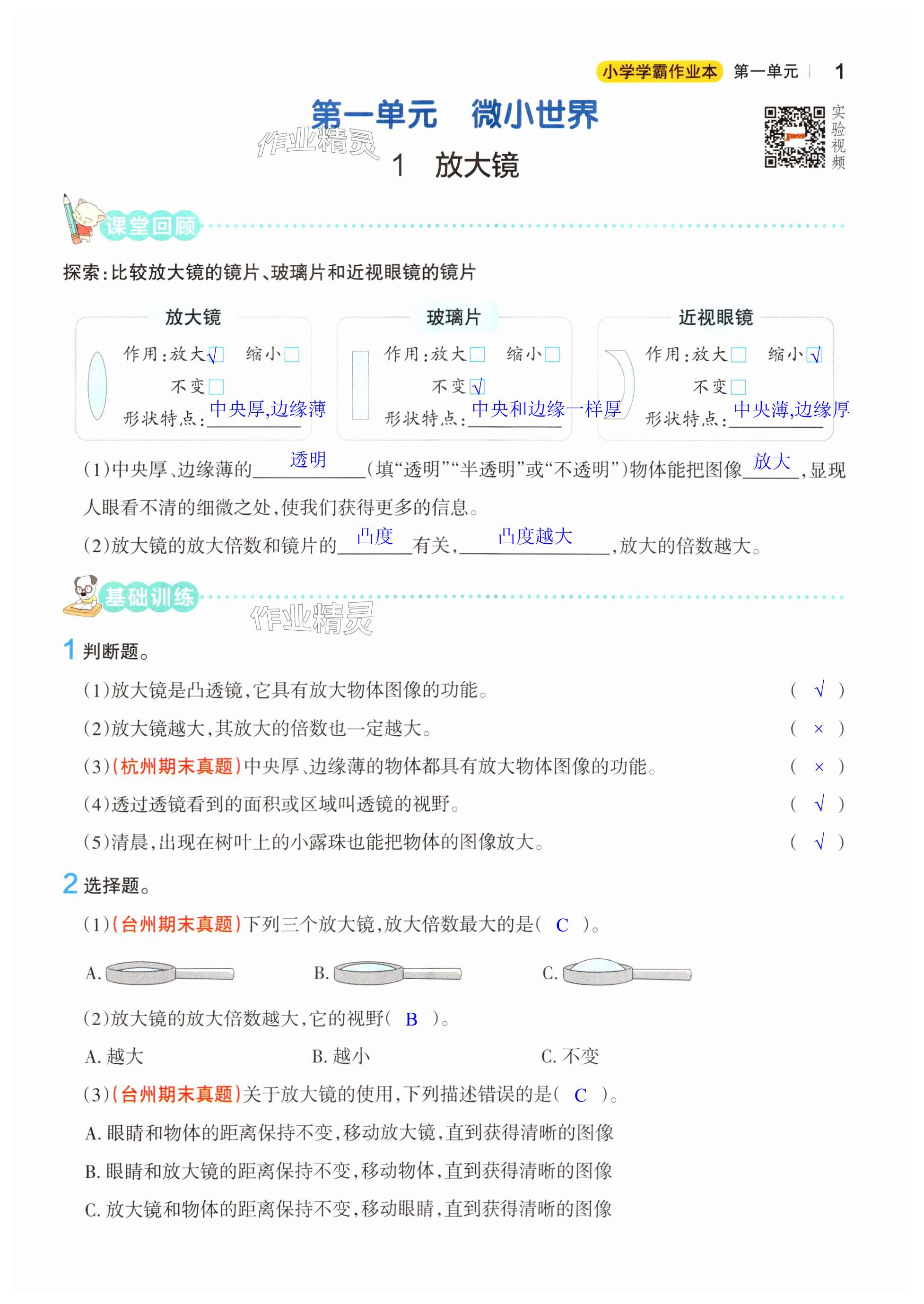 注:目前有些书本章节名称可能整理的还不是很完善,但都是按照顺序排列的,请同学们按照顺序仔细查找。练习册 2024年小学学霸作业本六年级科学上册教科版 答案主要是用来给同学们做完题方便对答案用的,请勿直接抄袭。