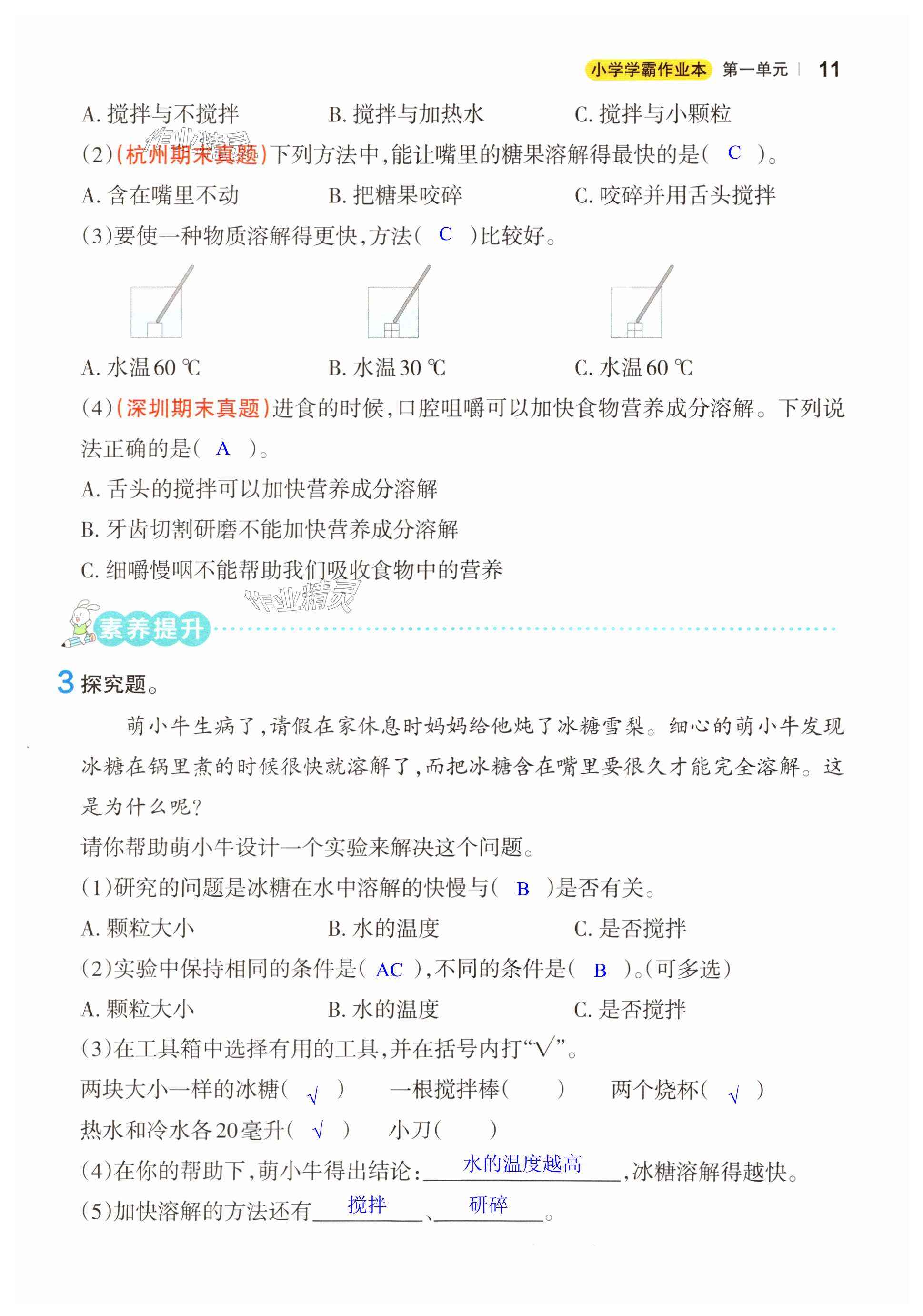 注:目前有些书本章节名称可能整理的还不是很完善,但都是按照顺序排列的,请同学们按照顺序仔细查找。练习册 2024年小学学霸作业本三年级科学上册教科版 答案主要是用来给同学们做完题方便对答案用的,请勿直接抄袭。