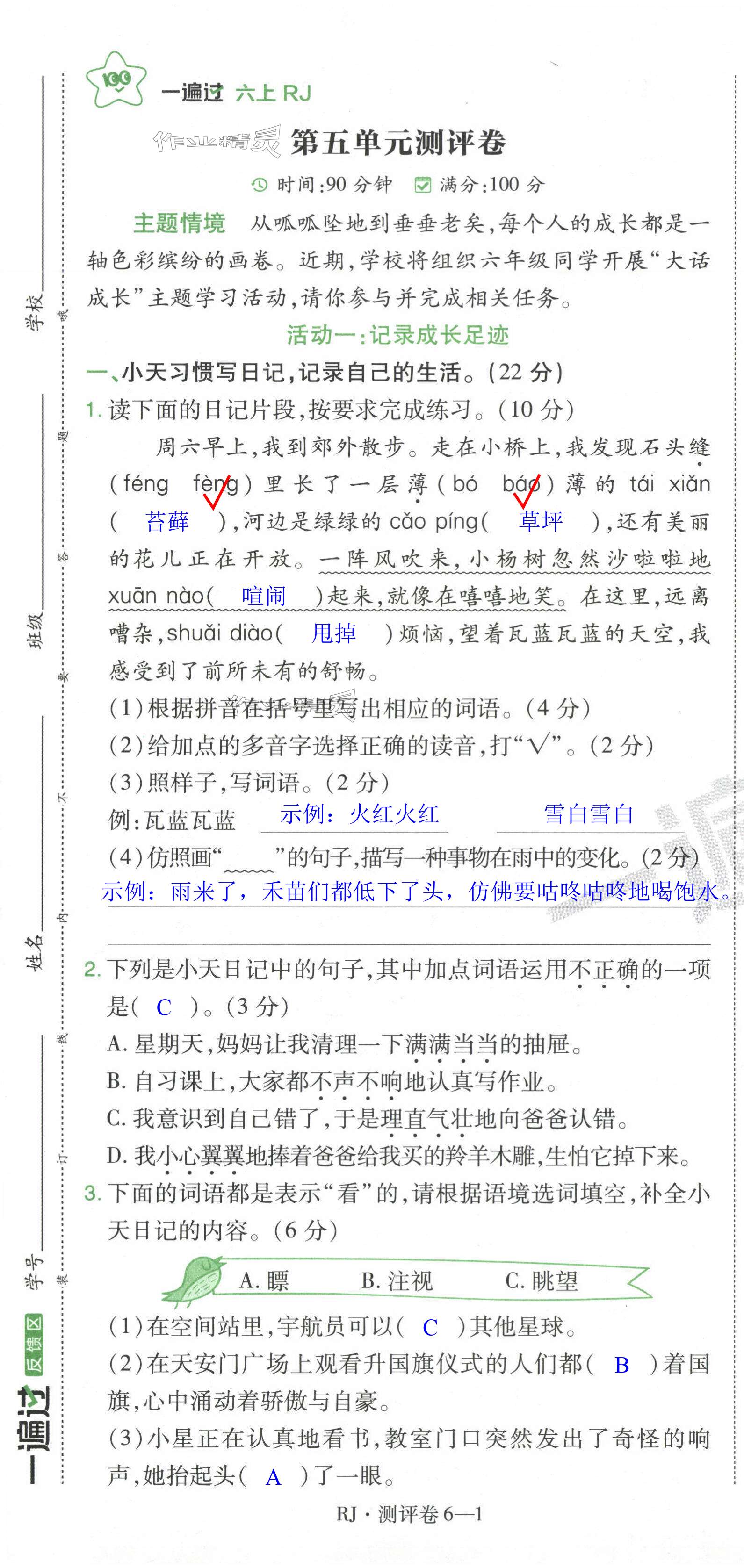 注:目前有些书本章节名称可能整理的还不是很完善,但都是按照顺序排列的,请同学们按照顺序仔细查找。练习册 2024年一遍过六年级语文上册人教版 答案主要是用来给同学们做完题方便对答案用的,请勿直接抄袭。