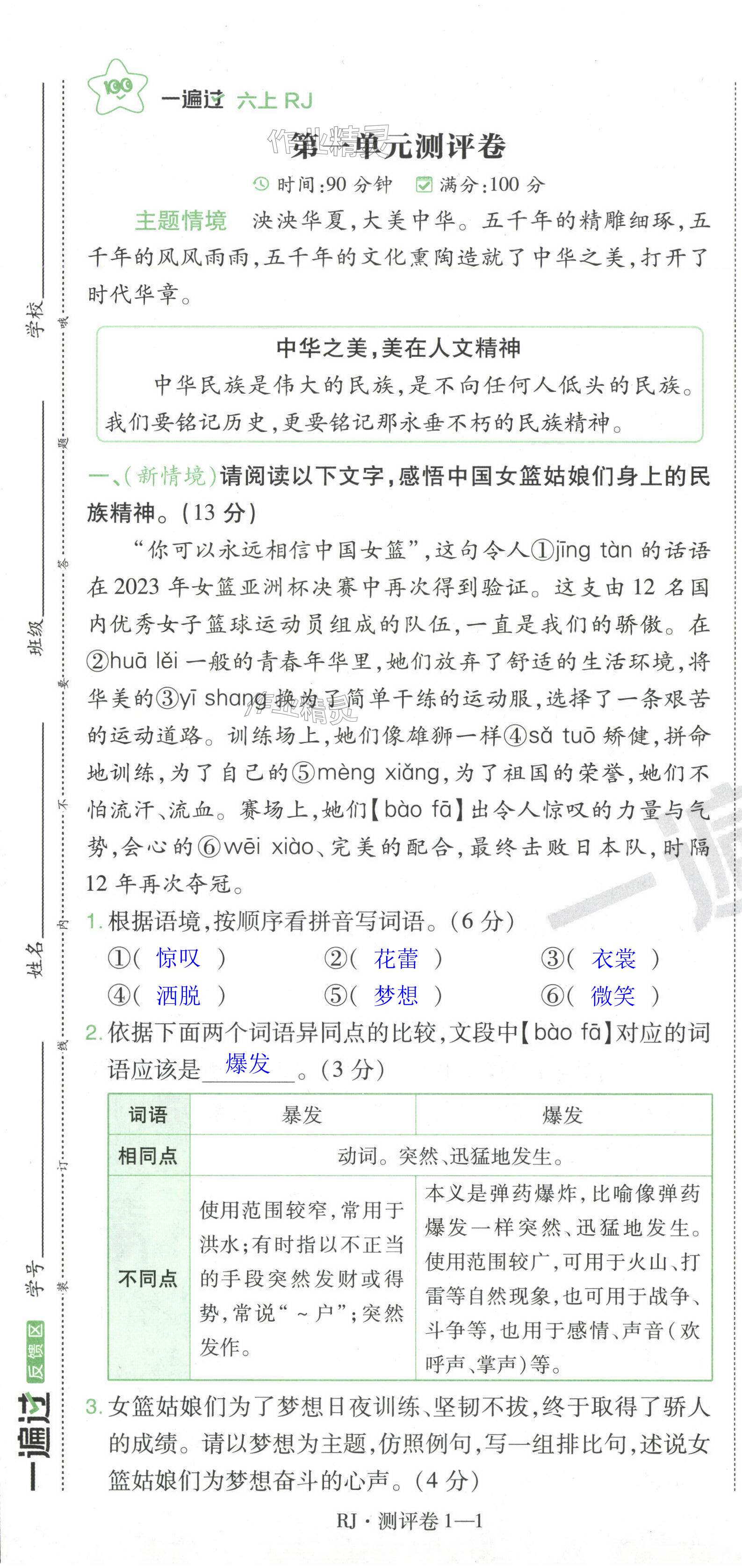 注:目前有些书本章节名称可能整理的还不是很完善,但都是按照顺序排列的,请同学们按照顺序仔细查找。练习册 2024年一遍过六年级语文上册人教版 答案主要是用来给同学们做完题方便对答案用的,请勿直接抄袭。