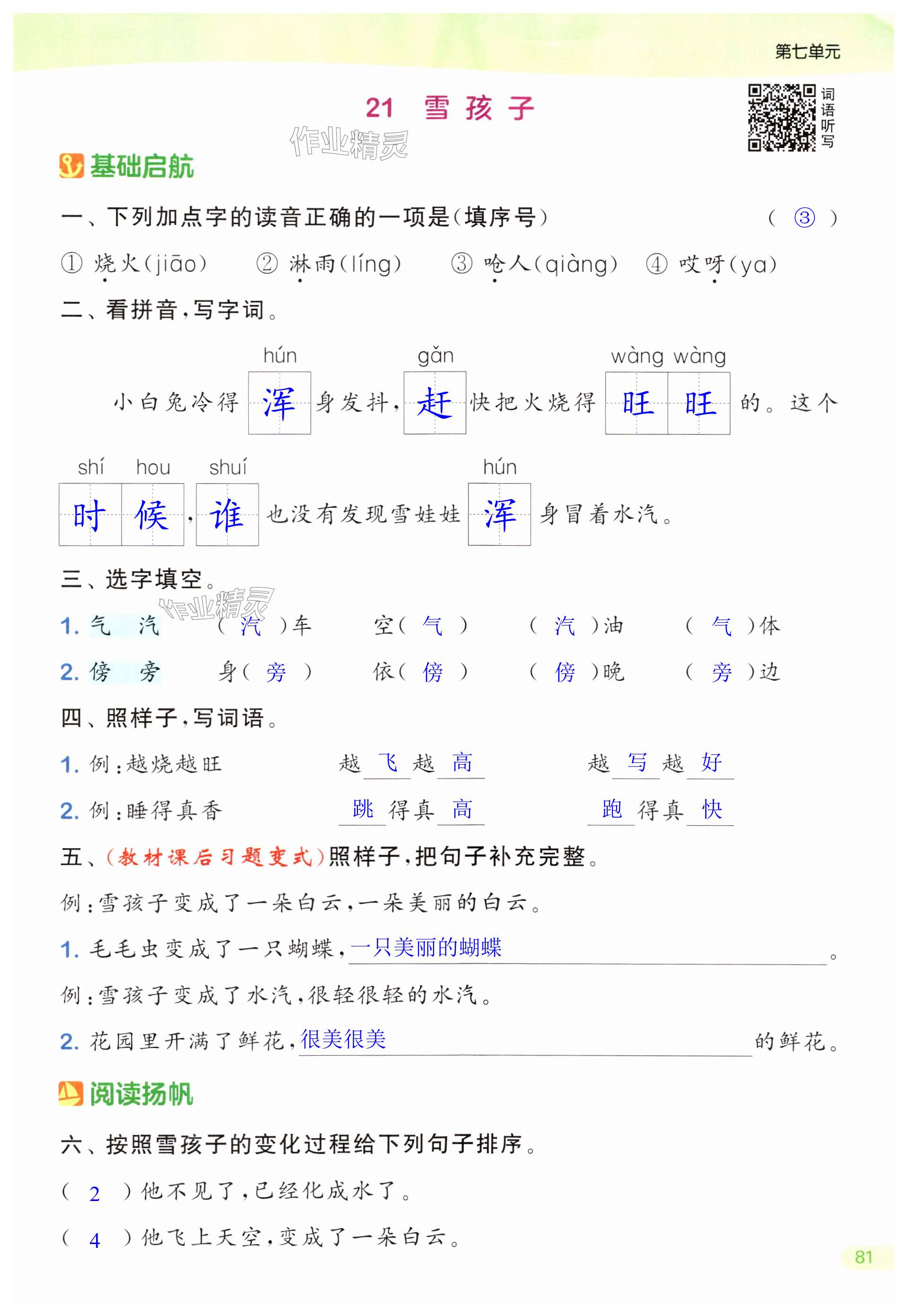 注:目前有些书本章节名称可能整理的还不是很完善,但都是按照顺序排列的,请同学们按照顺序仔细查找。练习册 2024年通城学典课时作业本二年级语文上册人教版浙江专版 答案主要是用来给同学们做完题方便对答案用的,请勿直接抄袭。