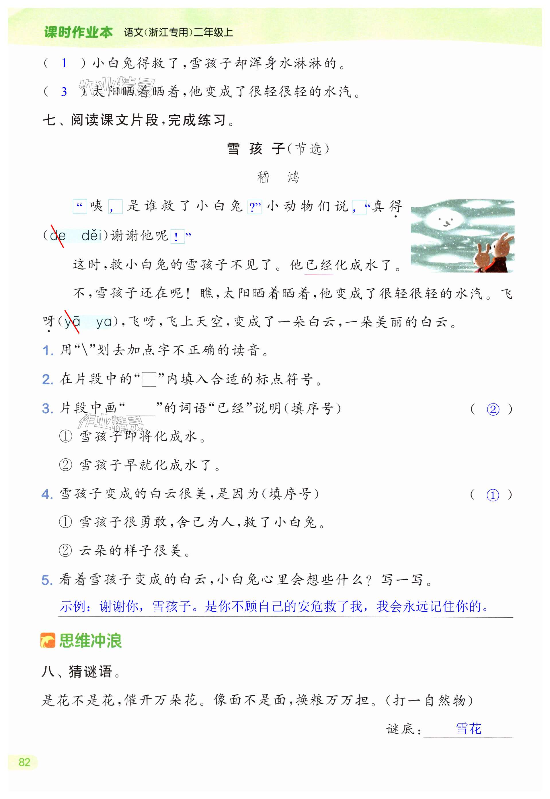 注:目前有些书本章节名称可能整理的还不是很完善,但都是按照顺序排列的,请同学们按照顺序仔细查找。练习册 2024年通城学典课时作业本二年级语文上册人教版浙江专版 答案主要是用来给同学们做完题方便对答案用的,请勿直接抄袭。
