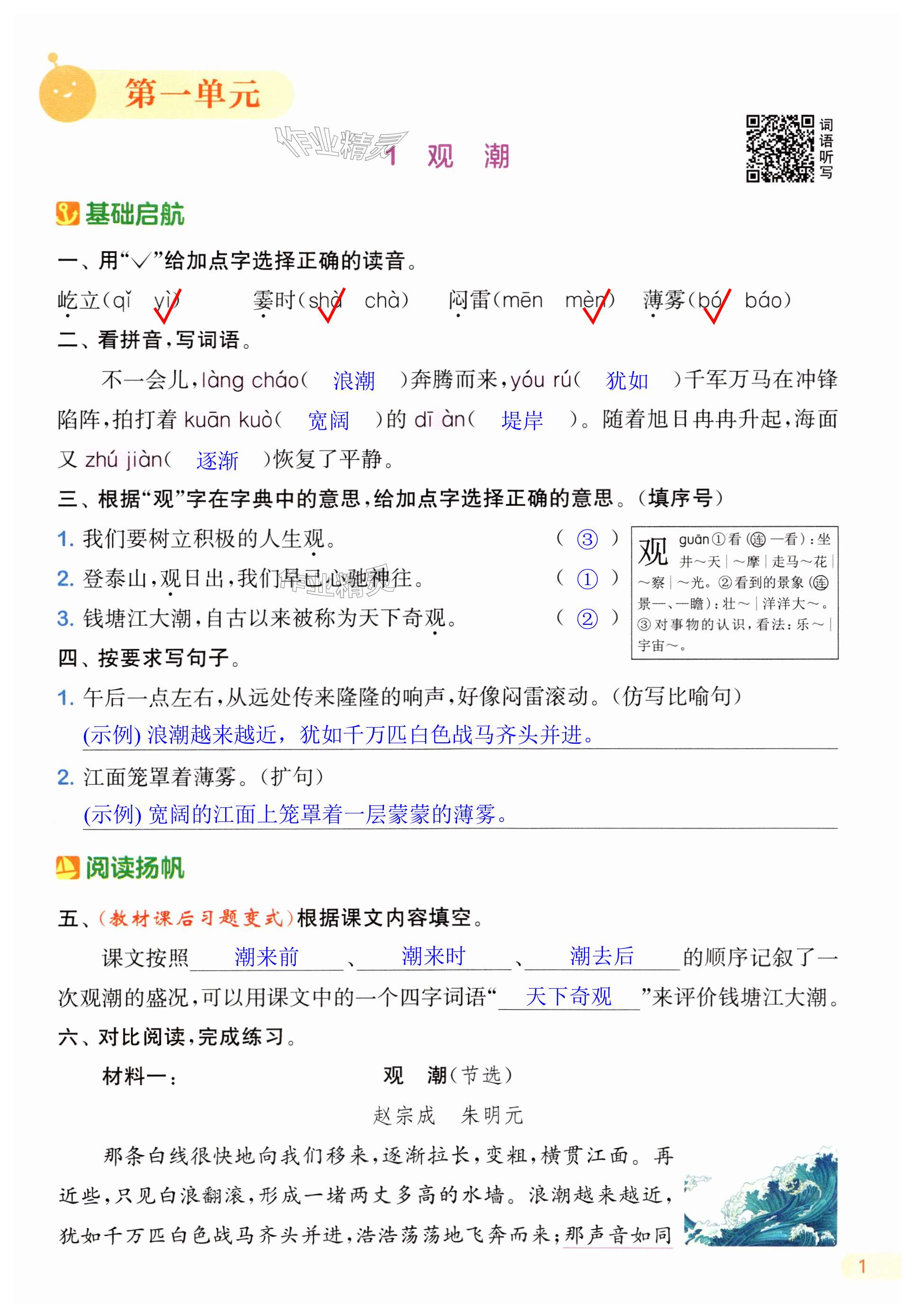 注:目前有些书本章节名称可能整理的还不是很完善,但都是按照顺序排列的,请同学们按照顺序仔细查找。练习册2024年通城学典课时作业本四年级语文上册人教版浙江专版答案主要是用来给同学们做完题方便对答案用的,请勿直接抄袭。