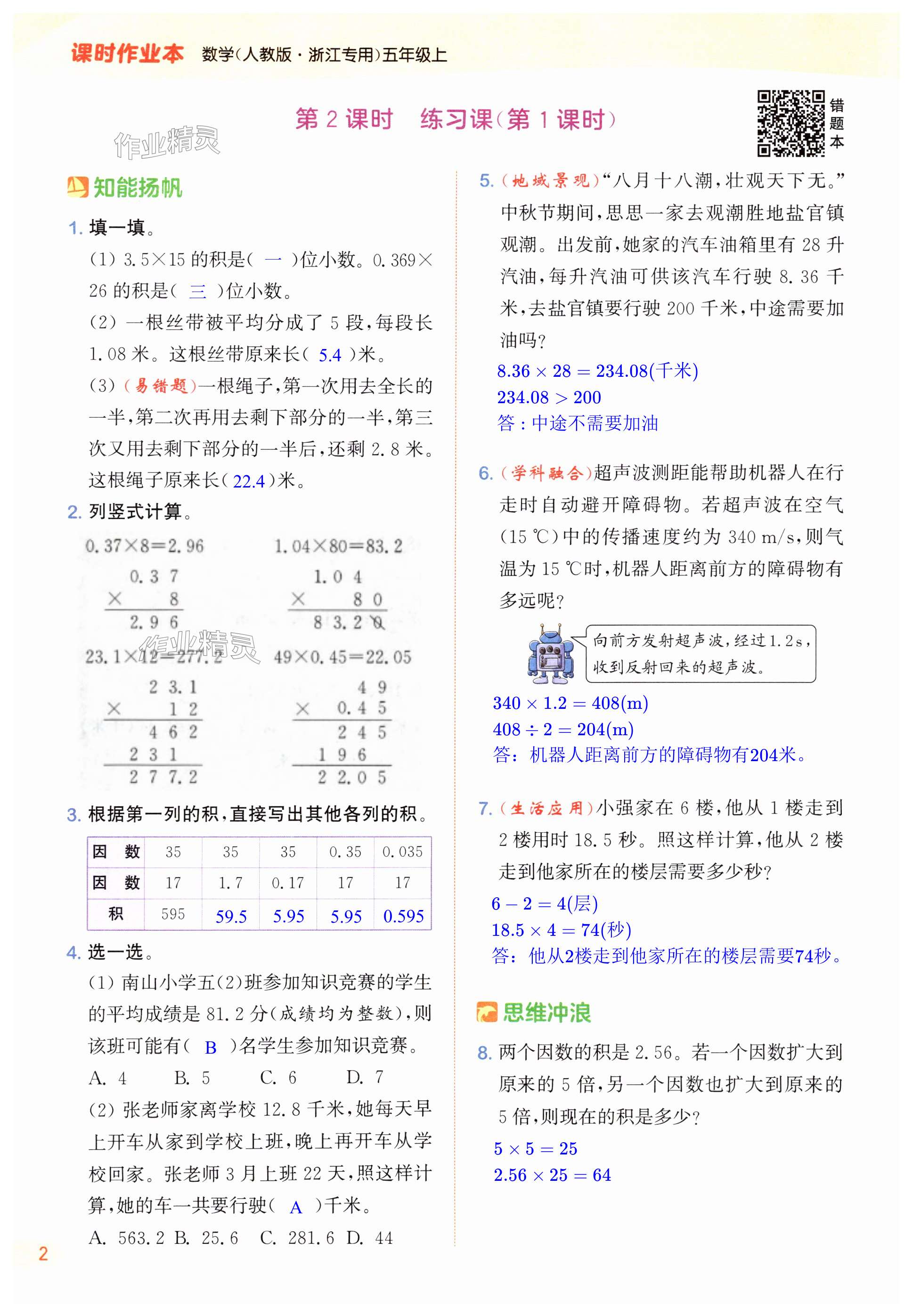 注:目前有些书本章节名称可能整理的还不是很完善,但都是按照顺序排列的,请同学们按照顺序仔细查找。练习册 2024年通城学典课时作业本五年级数学上册人教版浙江专版 答案主要是用来给同学们做完题方便对答案用的,请勿直接抄袭。