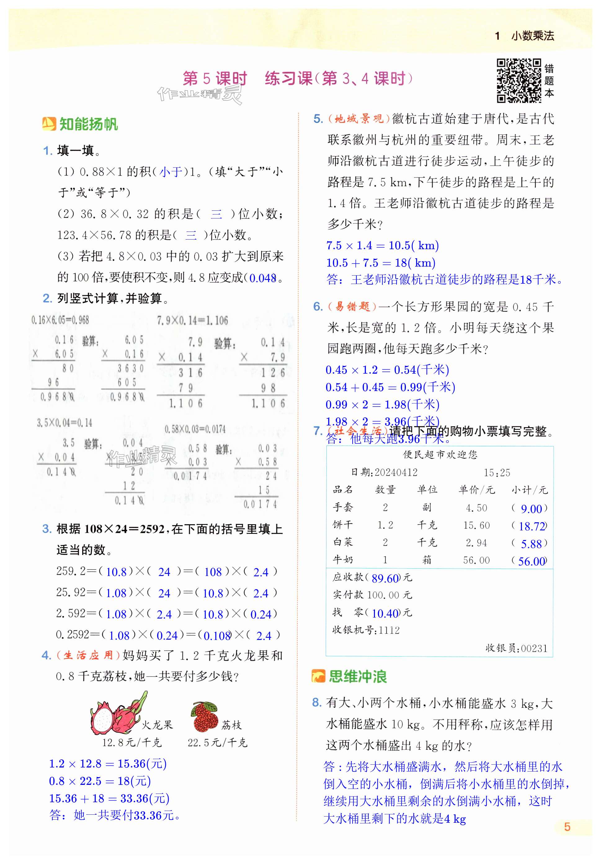 注:目前有些书本章节名称可能整理的还不是很完善,但都是按照顺序排列的,请同学们按照顺序仔细查找。练习册 2024年通城学典课时作业本五年级数学上册人教版浙江专版 答案主要是用来给同学们做完题方便对答案用的,请勿直接抄袭。