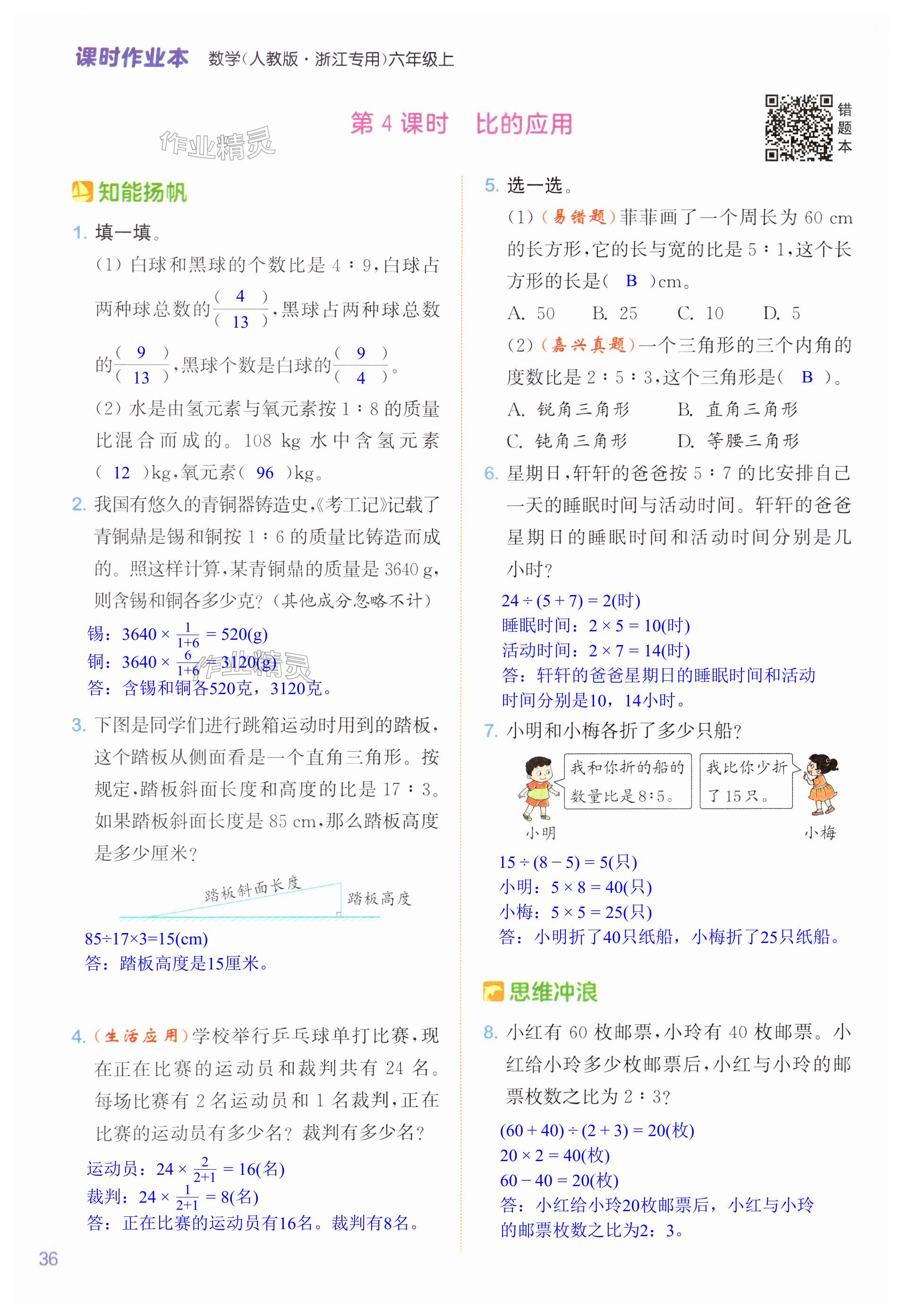 注:目前有些书本章节名称可能整理的还不是很完善,但都是按照顺序排列的,请同学们按照顺序仔细查找。练习册 2024年通城学典课时作业本六年级数学上册人教版浙江专版 答案主要是用来给同学们做完题方便对答案用的,请勿直接抄袭。