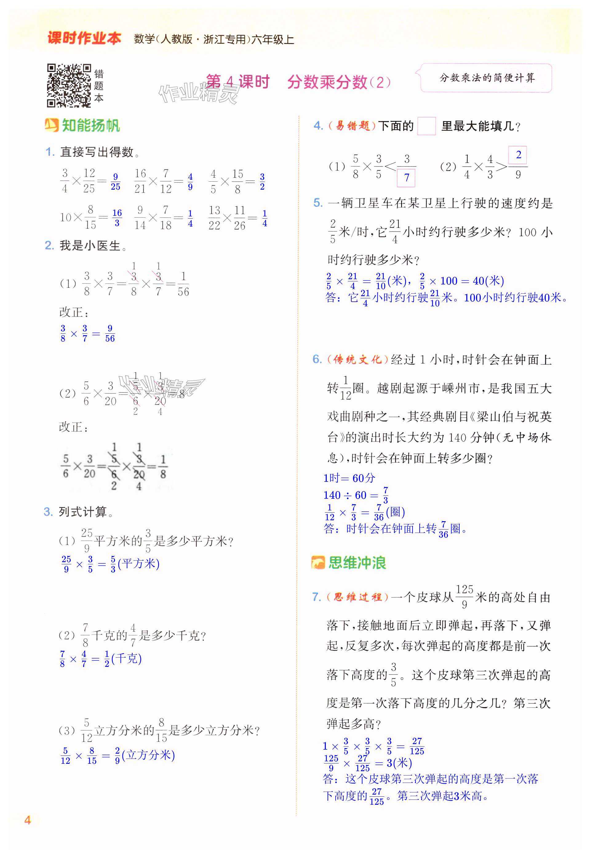 注:目前有些书本章节名称可能整理的还不是很完善,但都是按照顺序排列的,请同学们按照顺序仔细查找。练习册 2024年通城学典课时作业本六年级数学上册人教版浙江专版 答案主要是用来给同学们做完题方便对答案用的,请勿直接抄袭。