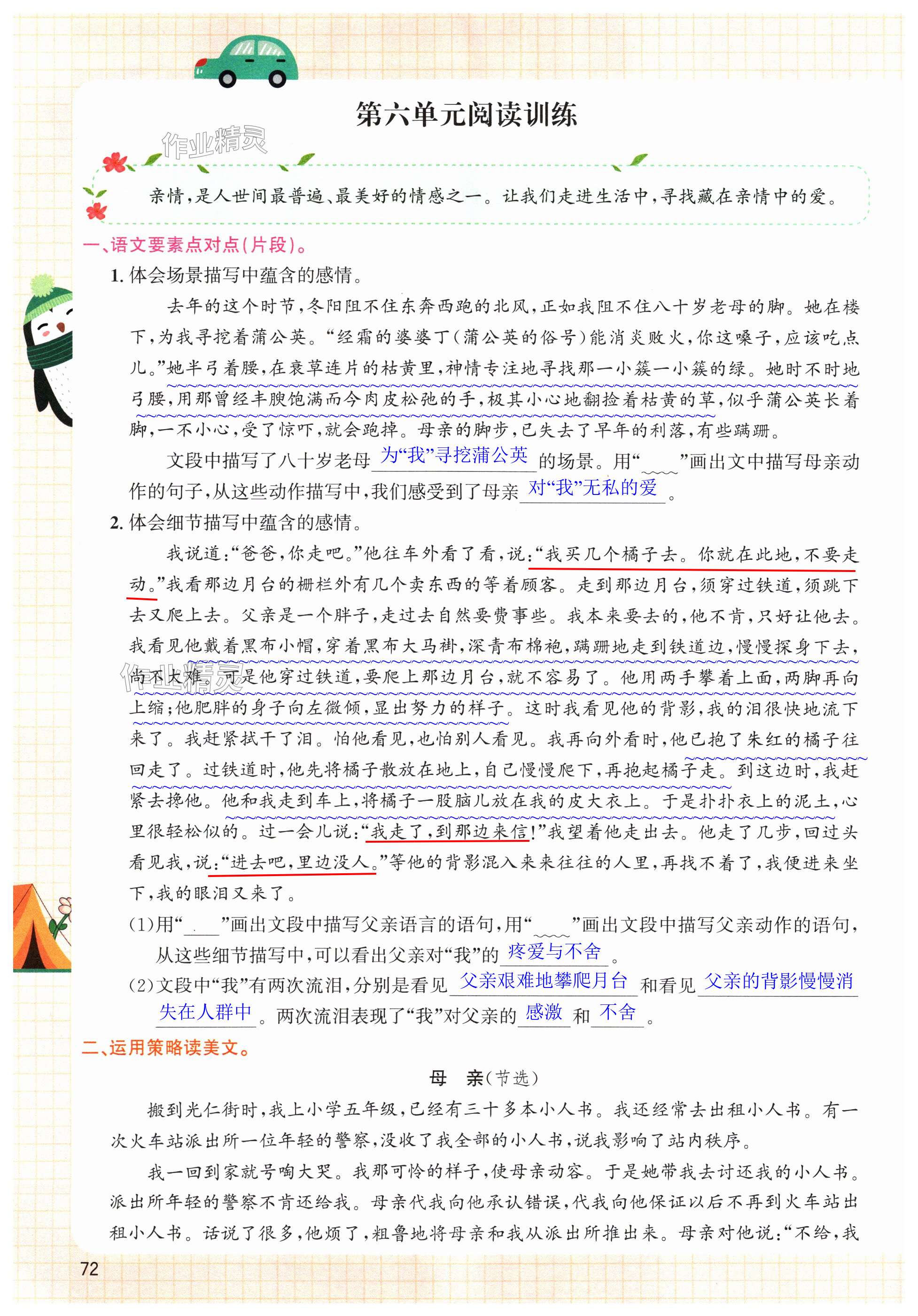注:目前有些书本章节名称可能整理的还不是很完善,但都是按照顺序排列的,请同学们按照顺序仔细查找。练习册 2024年语文要素天天练五年级语文上册人教版浙江专版 答案主要是用来给同学们做完题方便对答案用的,请勿直接抄袭。