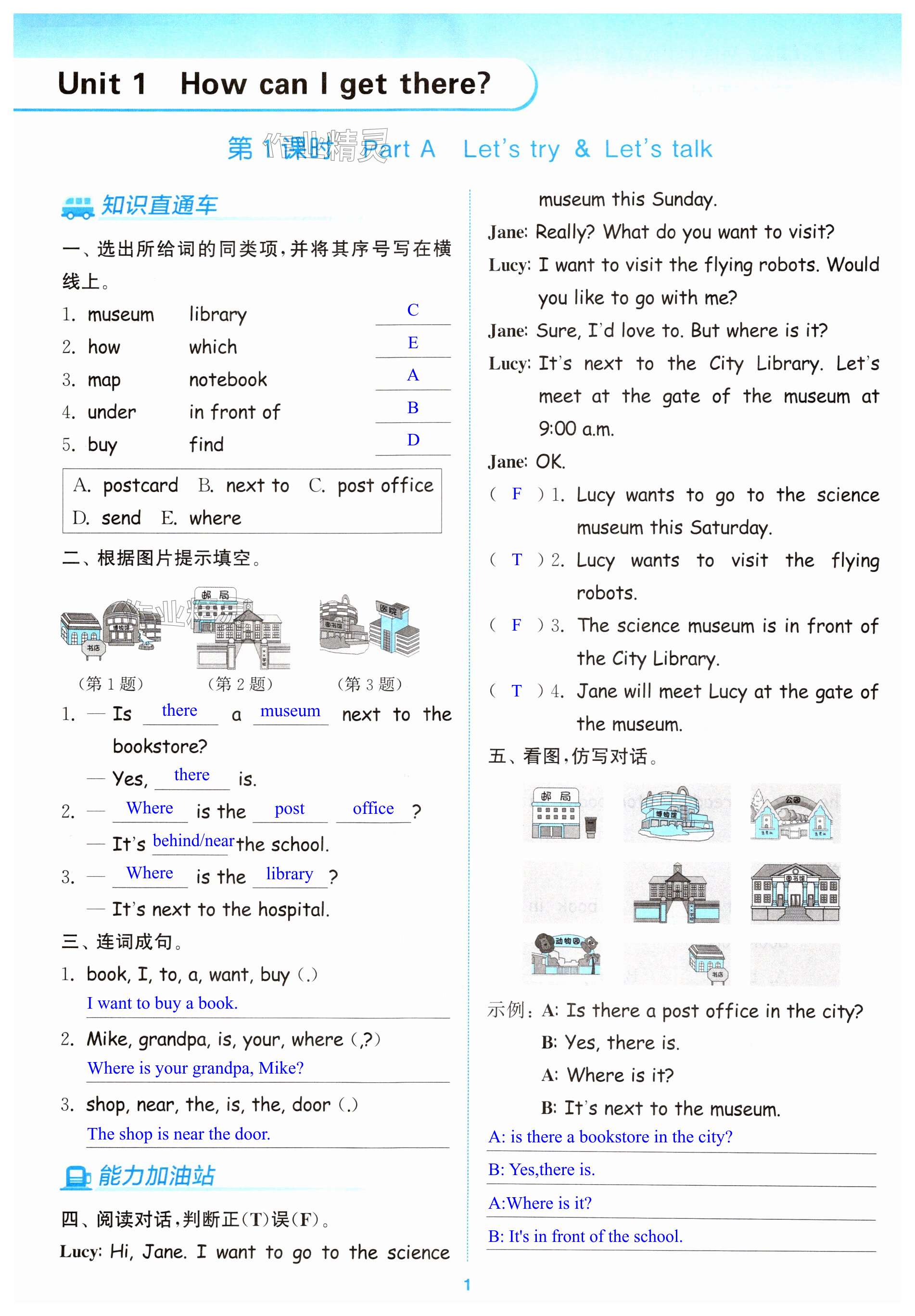 注:目前有些书本章节名称可能整理的还不是很完善,但都是按照顺序排列的,请同学们按照顺序仔细查找。练习册 2024年通城学典课时新体验六年级英语上册人教版 答案主要是用来给同学们做完题方便对答案用的,请勿直接抄袭。