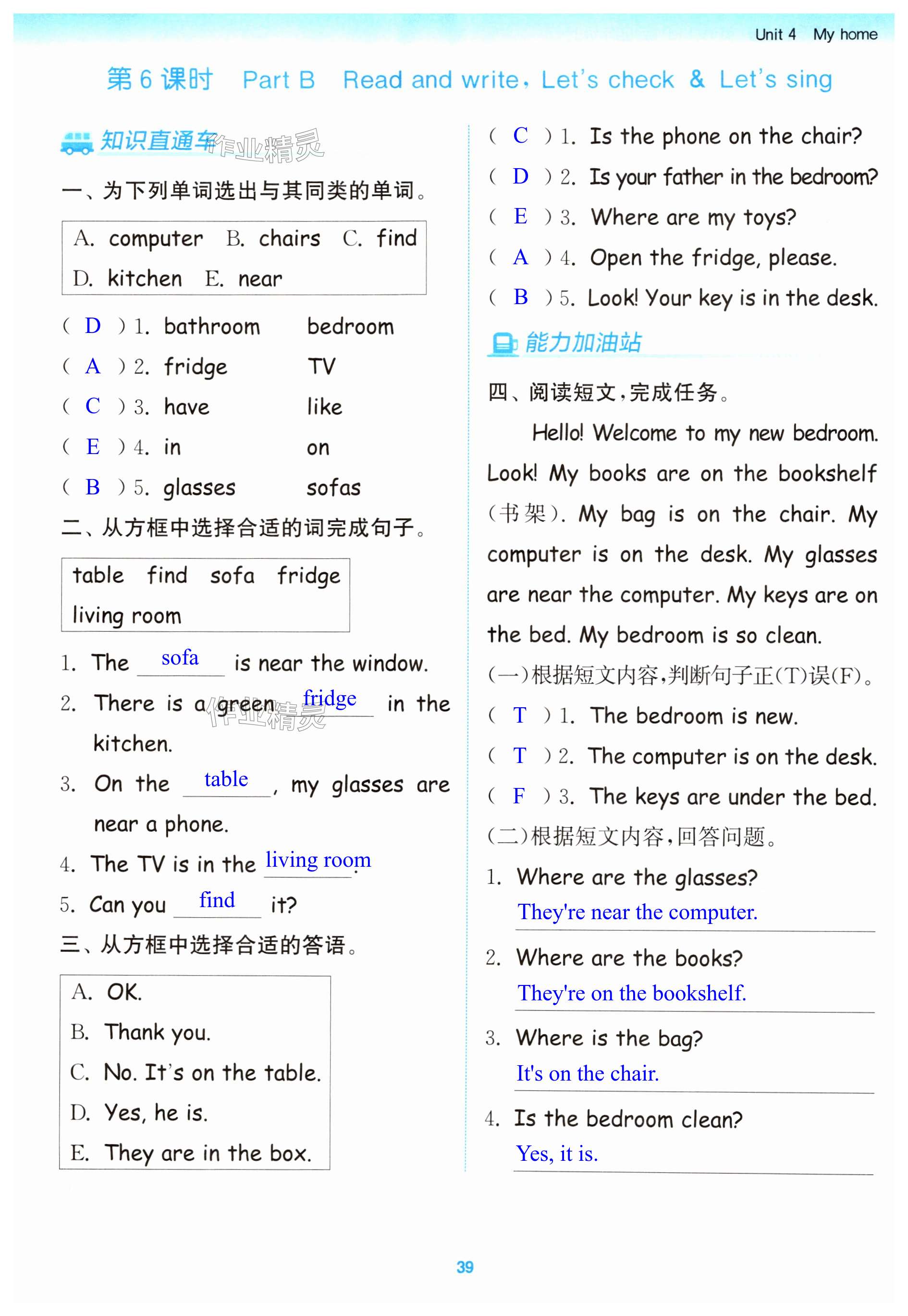 注:目前有些书本章节名称可能整理的还不是很完善,但都是按照顺序排列的,请同学们按照顺序仔细查找。练习册 2024年通城学典课时新体验四年级英语上册人教版 答案主要是用来给同学们做完题方便对答案用的,请勿直接抄袭。