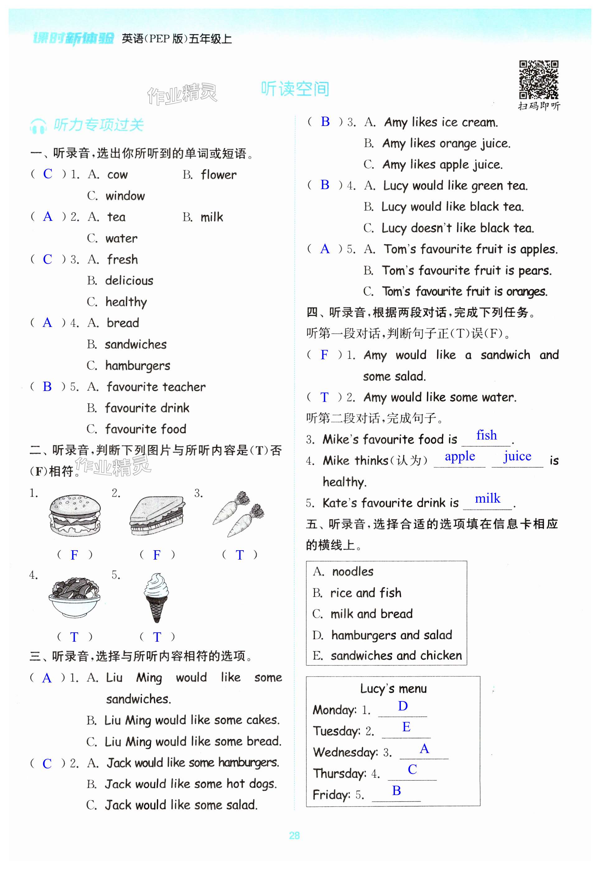 注:目前有些书本章节名称可能整理的还不是很完善,但都是按照顺序排列的,请同学们按照顺序仔细查找。练习册 2024年通城学典课时新体验五年级英语上册人教版 答案主要是用来给同学们做完题方便对答案用的,请勿直接抄袭。