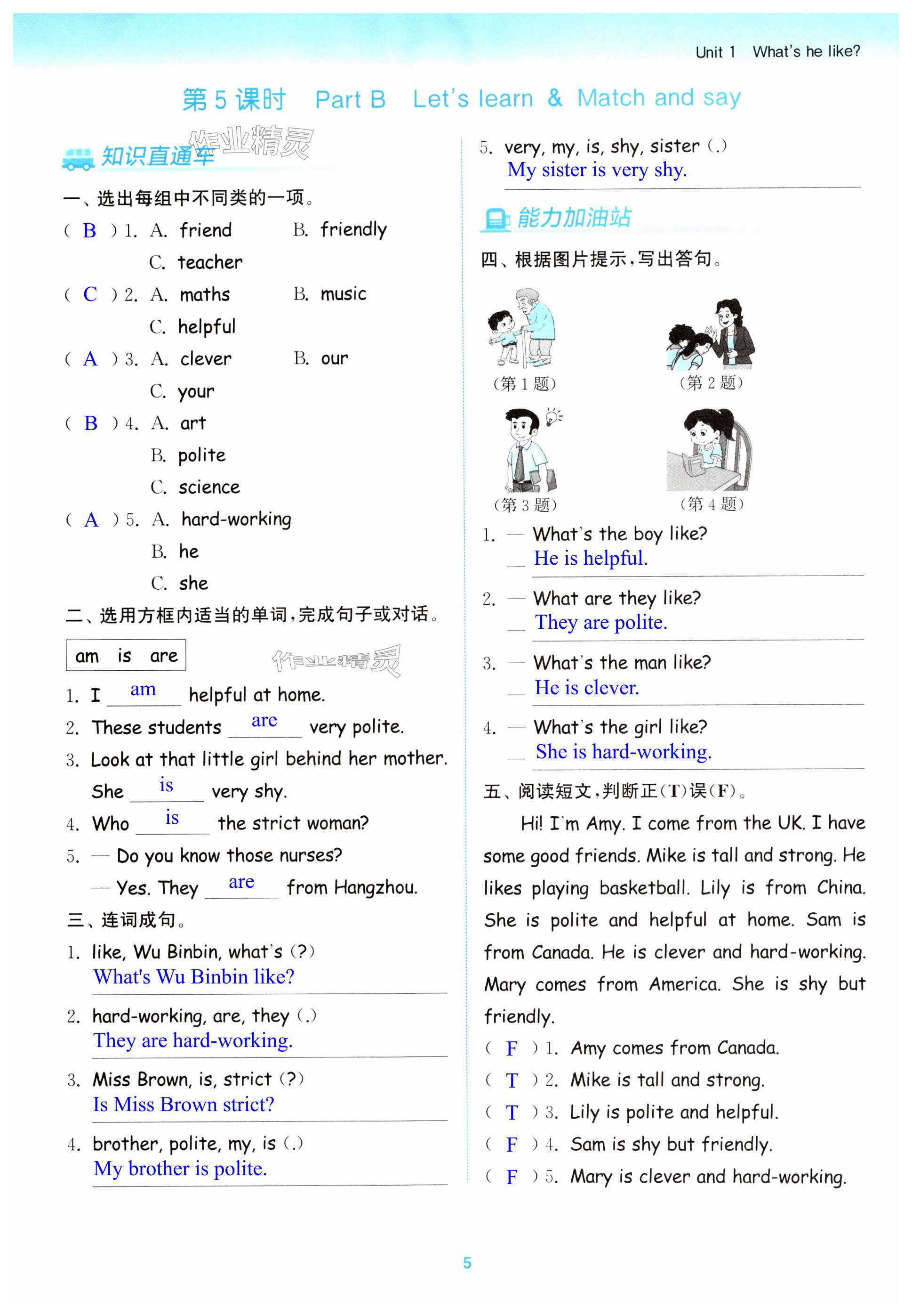 注:目前有些书本章节名称可能整理的还不是很完善,但都是按照顺序排列的,请同学们按照顺序仔细查找。练习册 2024年通城学典课时新体验五年级英语上册人教版 答案主要是用来给同学们做完题方便对答案用的,请勿直接抄袭。