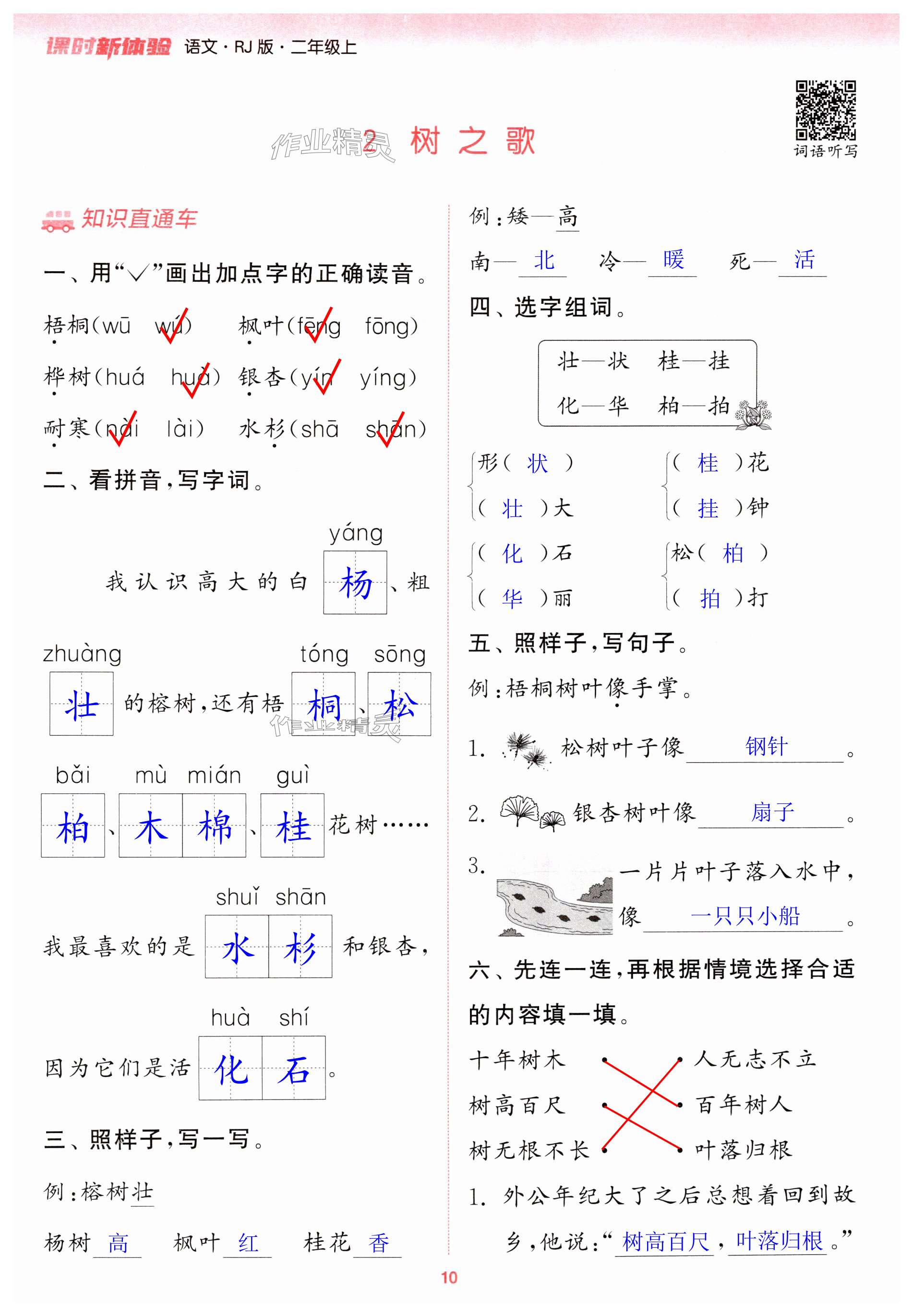 注:目前有些书本章节名称可能整理的还不是很完善,但都是按照顺序排列的,请同学们按照顺序仔细查找。练习册 2024年通城学典课时新体验二年级语文上册人教版 答案主要是用来给同学们做完题方便对答案用的,请勿直接抄袭。