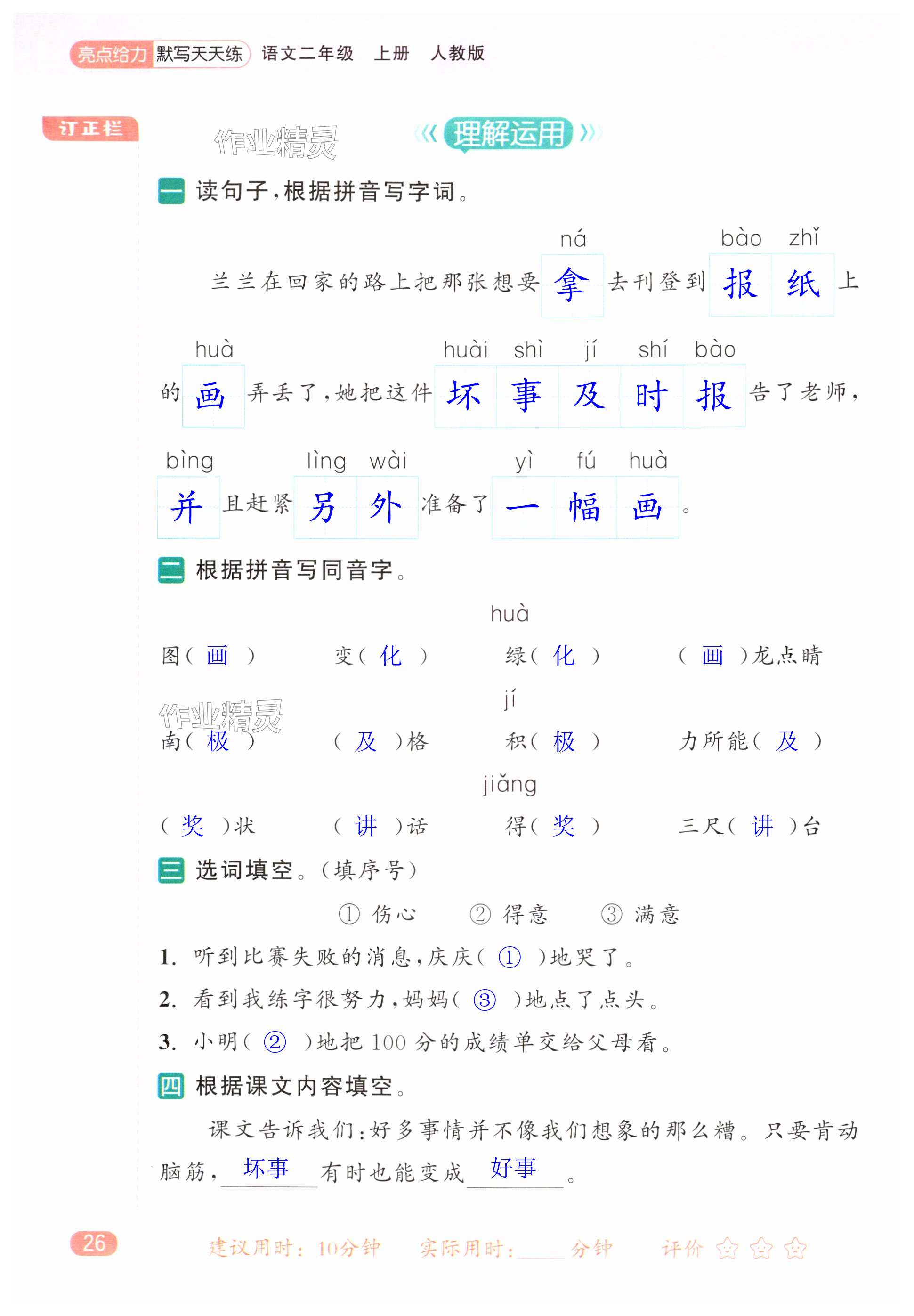 注:目前有些书本章节名称可能整理的还不是很完善,但都是按照顺序排列的,请同学们按照顺序仔细查找。练习册 2024年亮点给力默写天天练二年级语文上册人教版 答案主要是用来给同学们做完题方便对答案用的,请勿直接抄袭。