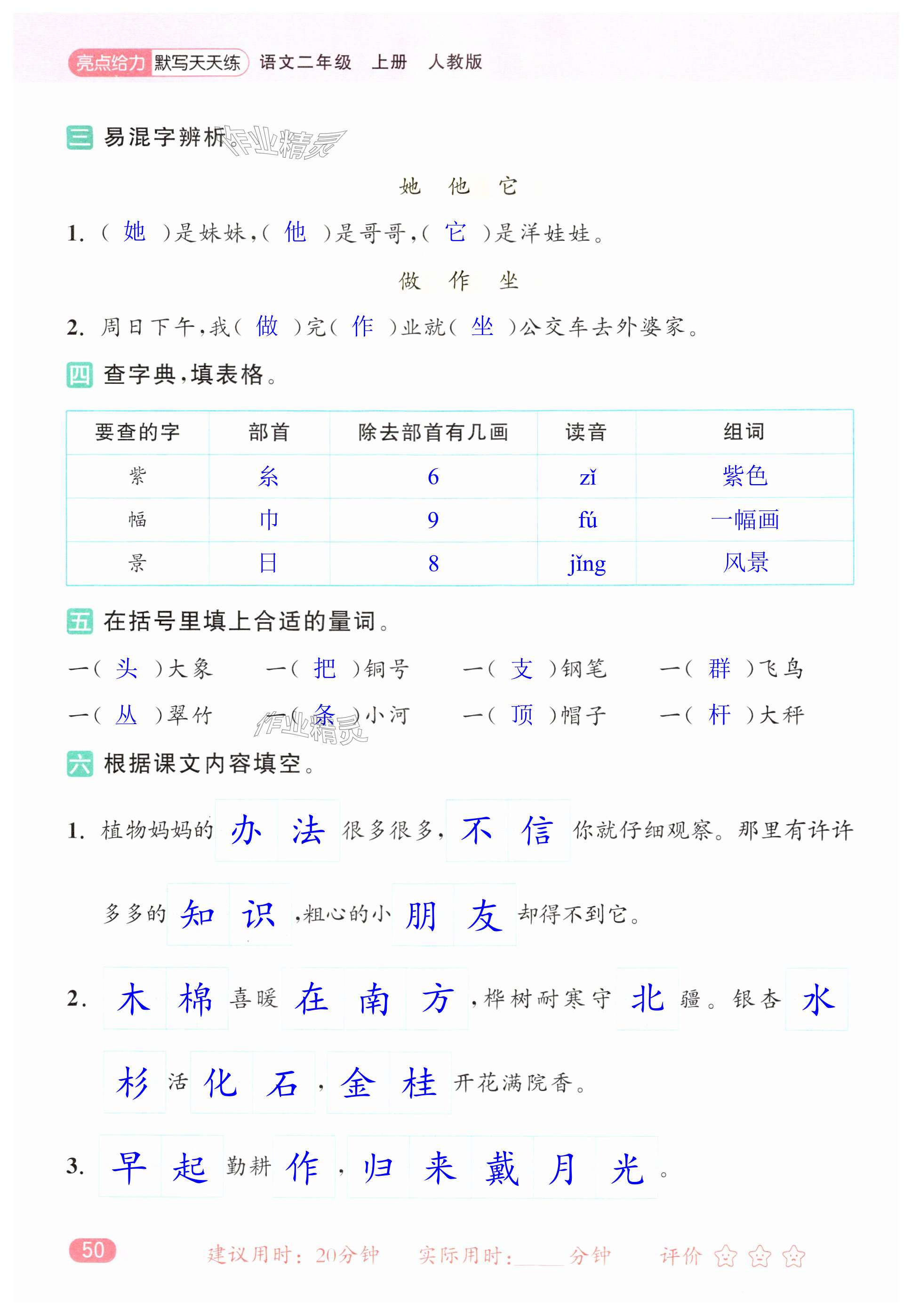 注:目前有些书本章节名称可能整理的还不是很完善,但都是按照顺序排列的,请同学们按照顺序仔细查找。练习册 2024年亮点给力默写天天练二年级语文上册人教版 答案主要是用来给同学们做完题方便对答案用的,请勿直接抄袭。