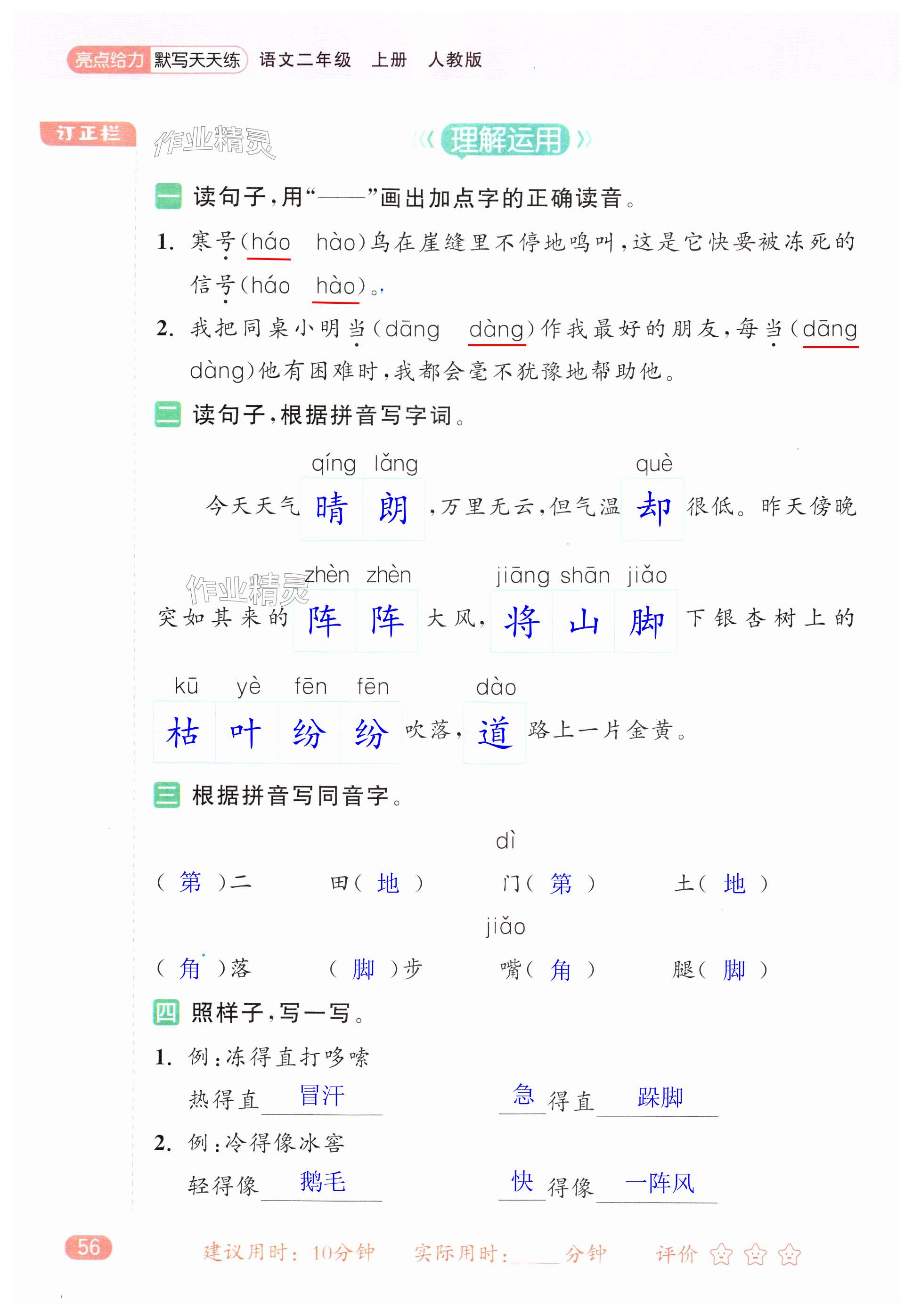 注:目前有些书本章节名称可能整理的还不是很完善,但都是按照顺序排列的,请同学们按照顺序仔细查找。练习册 2024年亮点给力默写天天练二年级语文上册人教版 答案主要是用来给同学们做完题方便对答案用的,请勿直接抄袭。
