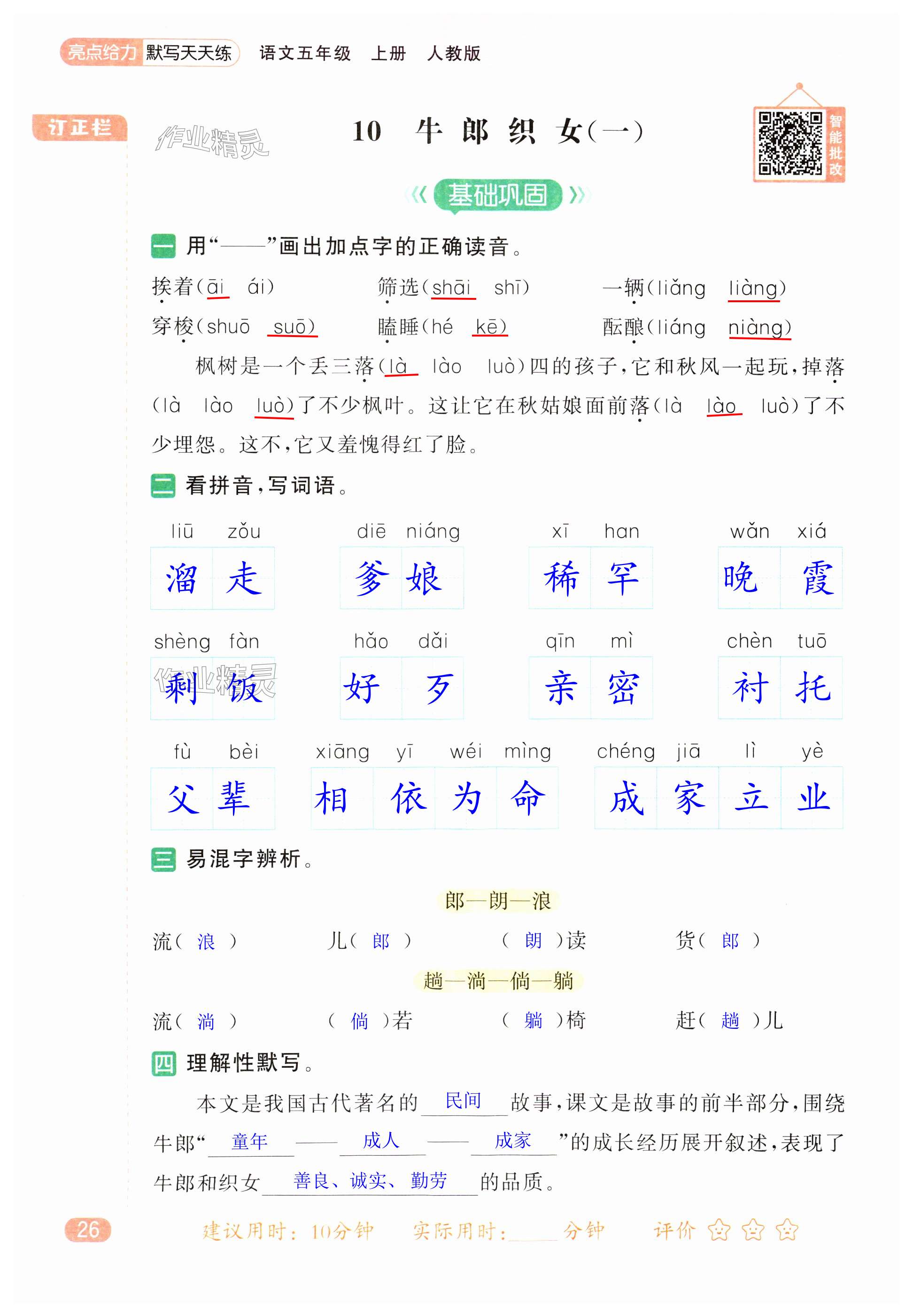 2024年亮点给力默写天天练五年级语文上册人教版