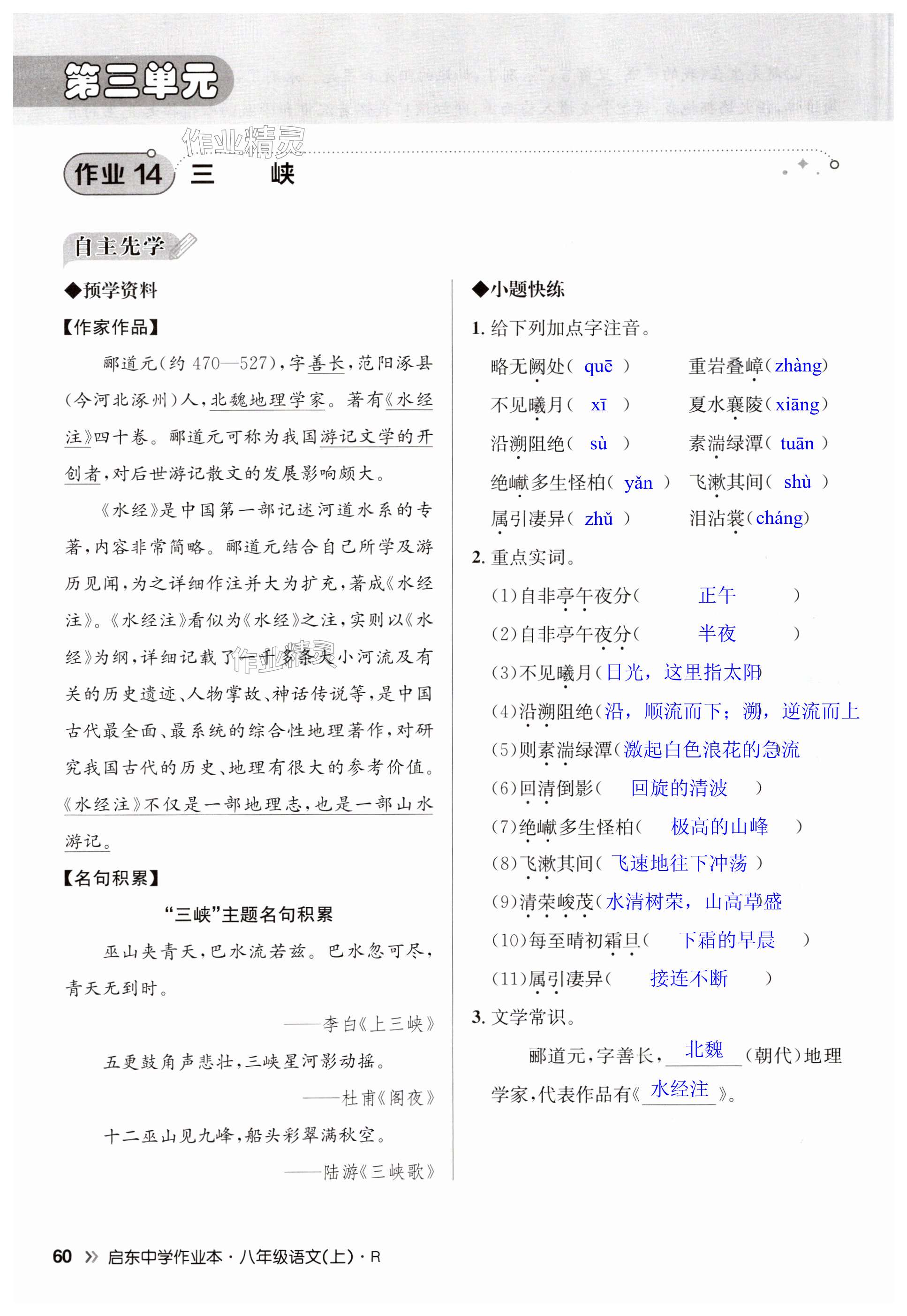 注:目前有些书本章节名称可能整理的还不是很完善,但都是按照顺序排列的,请同学们按照顺序仔细查找。练习册 2024年启东中学作业本八年级语文上册人教版 答案主要是用来给同学们做完题方便对答案用的,请勿直接抄袭。