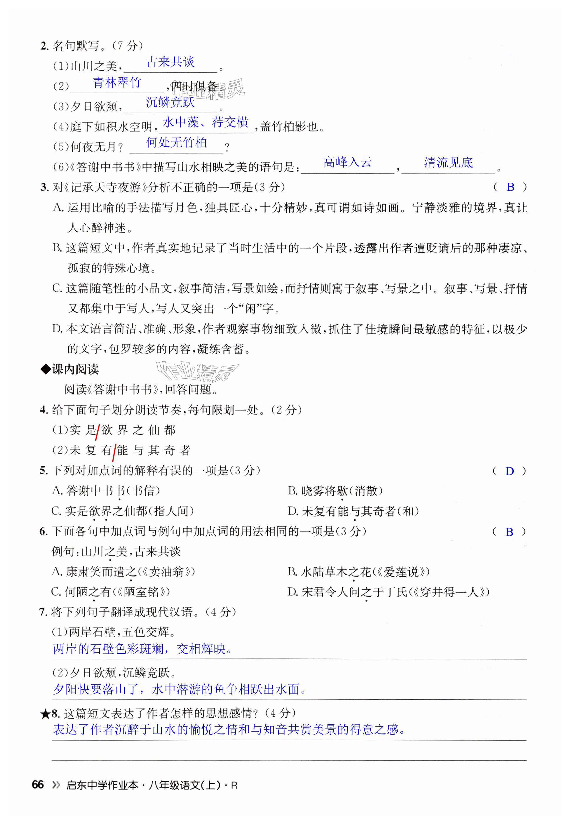 注:目前有些书本章节名称可能整理的还不是很完善,但都是按照顺序排列的,请同学们按照顺序仔细查找。练习册 2024年启东中学作业本八年级语文上册人教版 答案主要是用来给同学们做完题方便对答案用的,请勿直接抄袭。