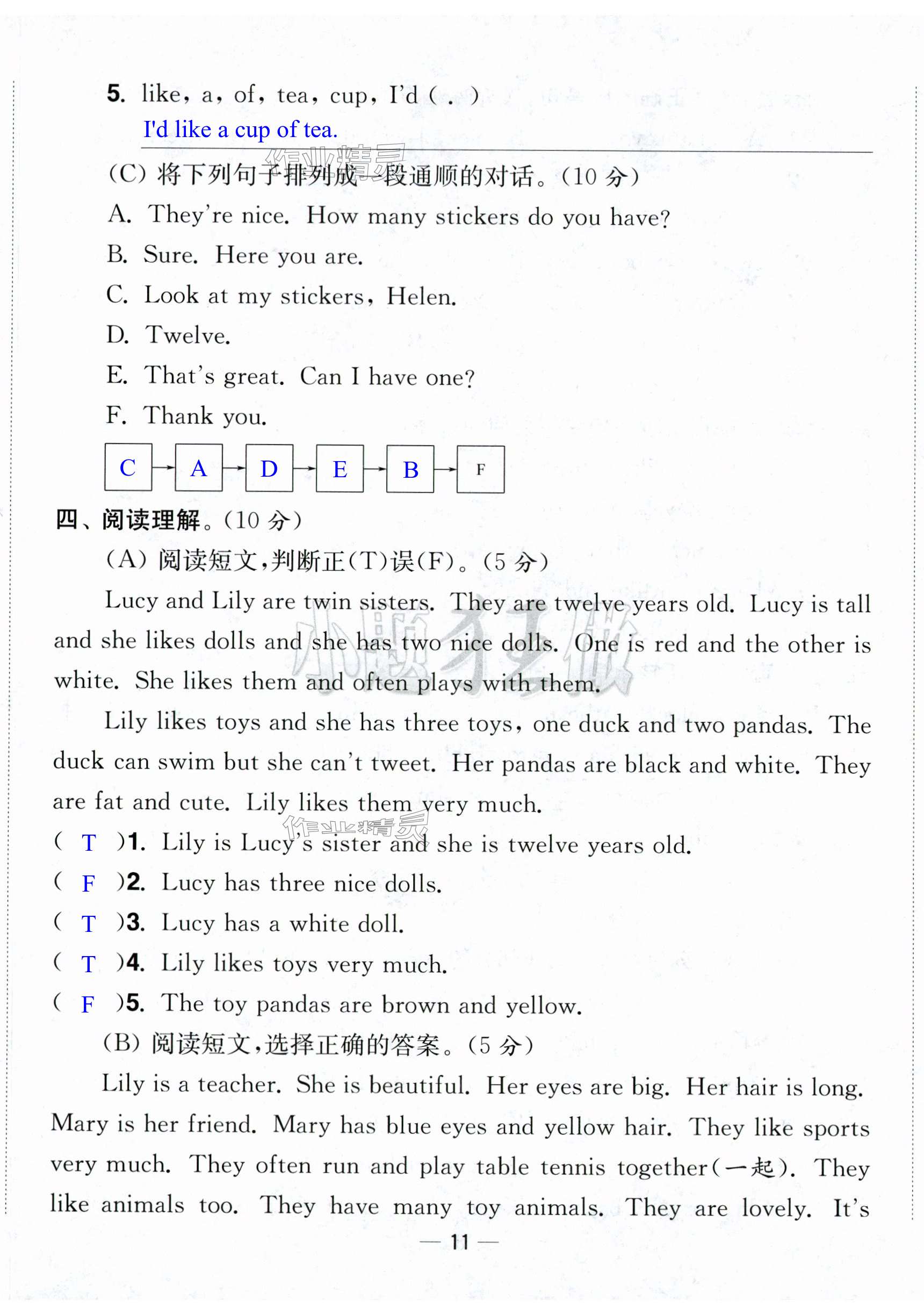 注:目前有些书本章节名称可能整理的还不是很完善,但都是按照顺序排列的,请同学们按照顺序仔细查找。练习册 2024年小题狂做培优作业本四年级英语上册译林版 答案主要是用来给同学们做完题方便对答案用的,请勿直接抄袭。