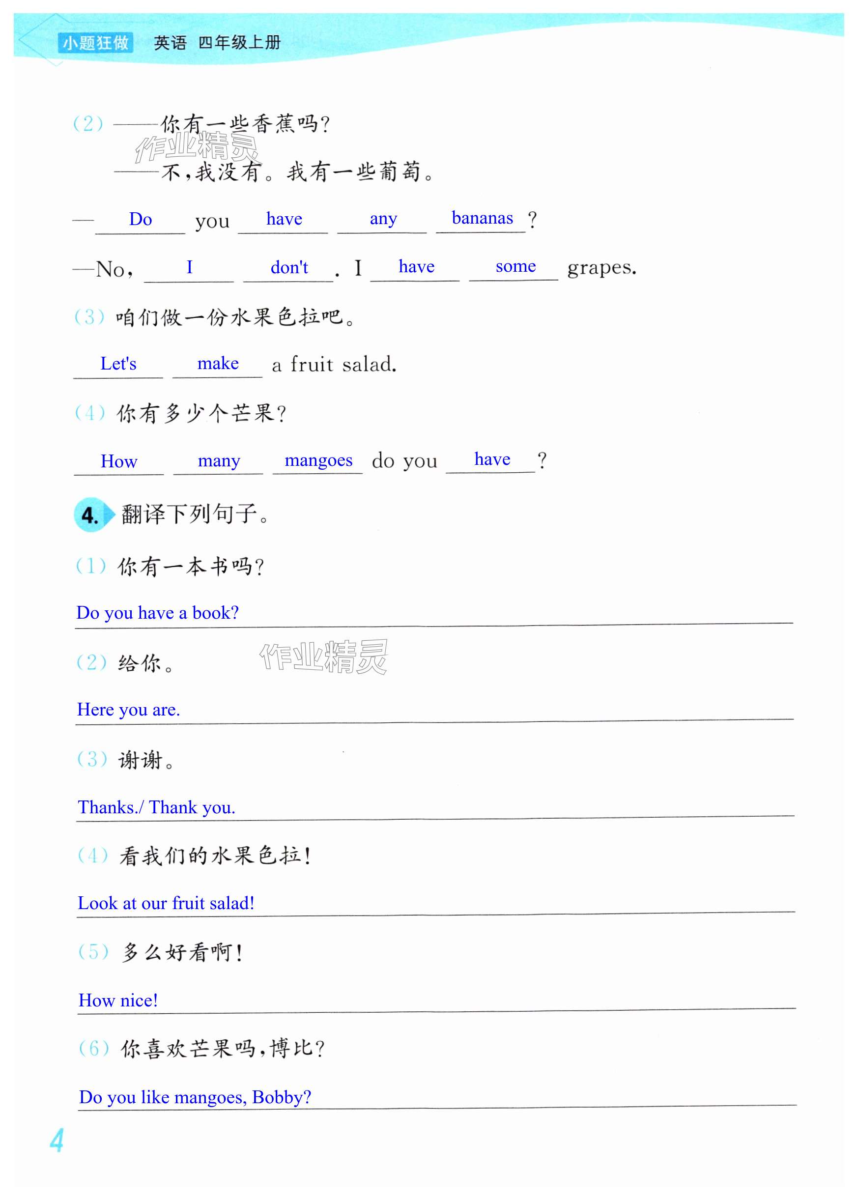 注:目前有些书本章节名称可能整理的还不是很完善,但都是按照顺序排列的,请同学们按照顺序仔细查找。练习册 2024年小题狂做培优作业本四年级英语上册译林版 答案主要是用来给同学们做完题方便对答案用的,请勿直接抄袭。