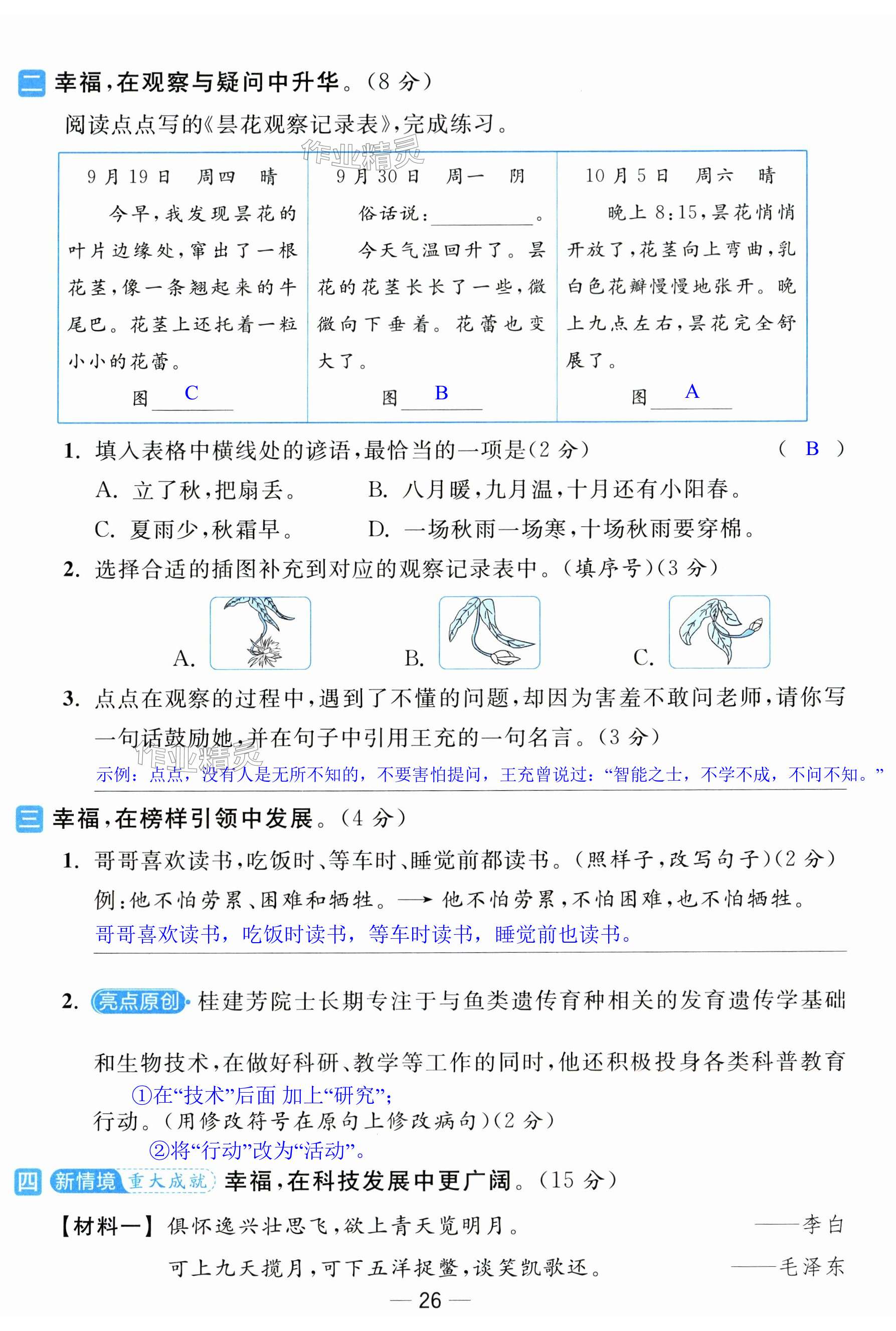 注:目前有些书本章节名称可能整理的还不是很完善,但都是按照顺序排列的,请同学们按照顺序仔细查找。练习册 2024年亮点给力提优班四年级语文上册人教版 答案主要是用来给同学们做完题方便对答案用的,请勿直接抄袭。