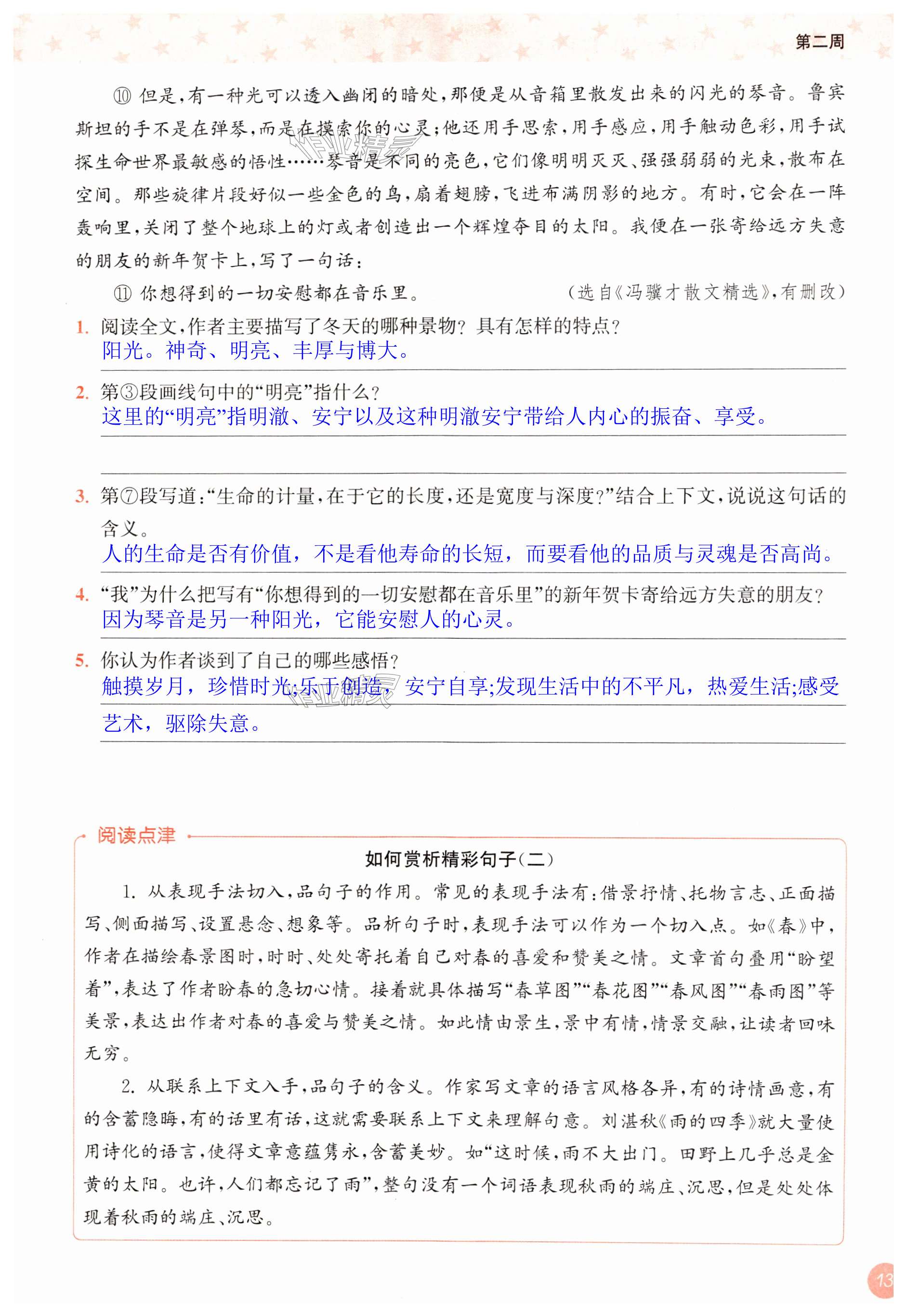 注:目前有些书本章节名称可能整理的还不是很完善,但都是按照顺序排列的,请同学们按照顺序仔细查找。练习册 2024年通城学典周计划课外阅读训练七年级语文上册人教版 答案主要是用来给同学们做完题方便对答案用的,请勿直接抄袭。