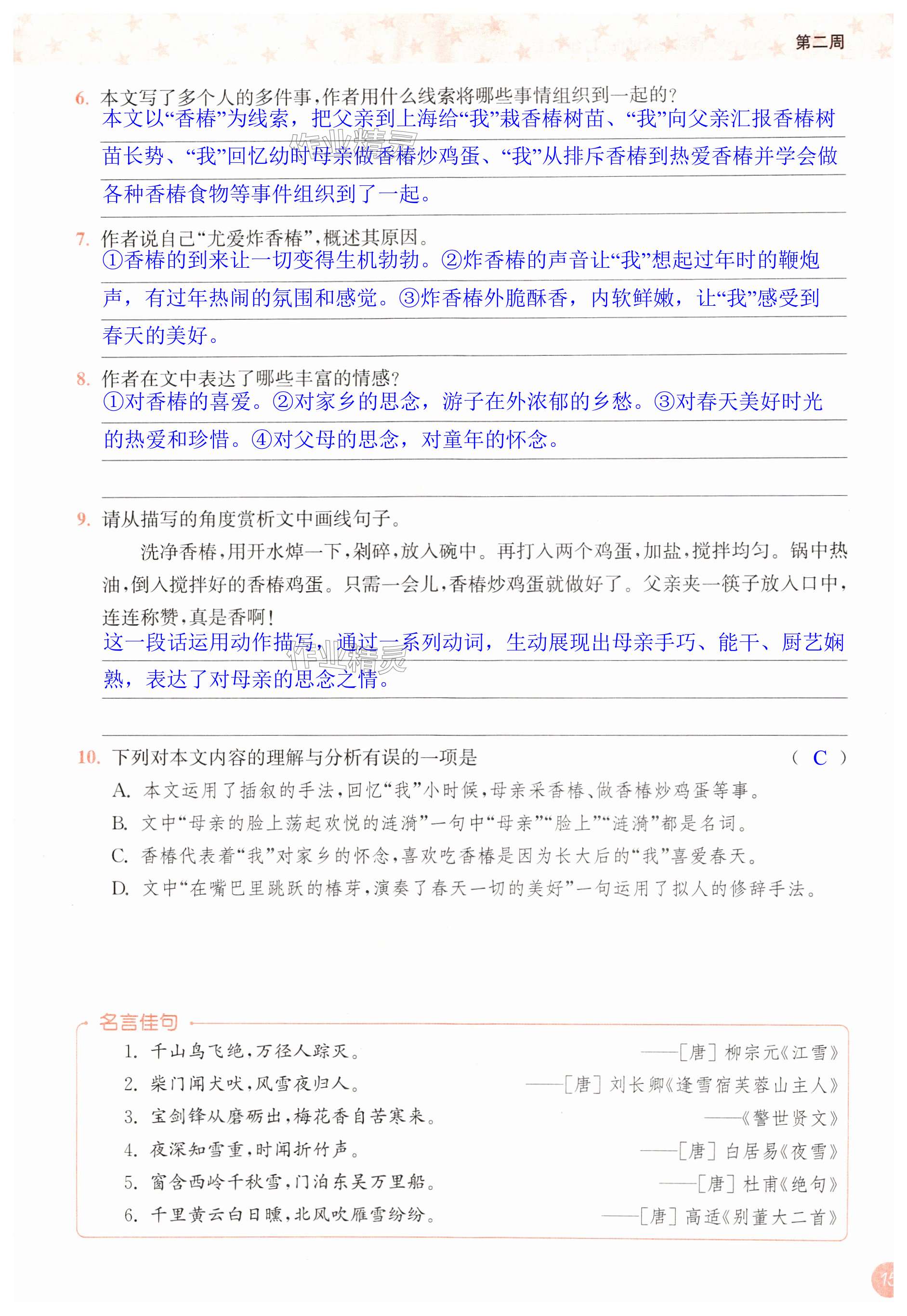 注:目前有些书本章节名称可能整理的还不是很完善,但都是按照顺序排列的,请同学们按照顺序仔细查找。练习册 2024年通城学典周计划课外阅读训练七年级语文上册人教版 答案主要是用来给同学们做完题方便对答案用的,请勿直接抄袭。