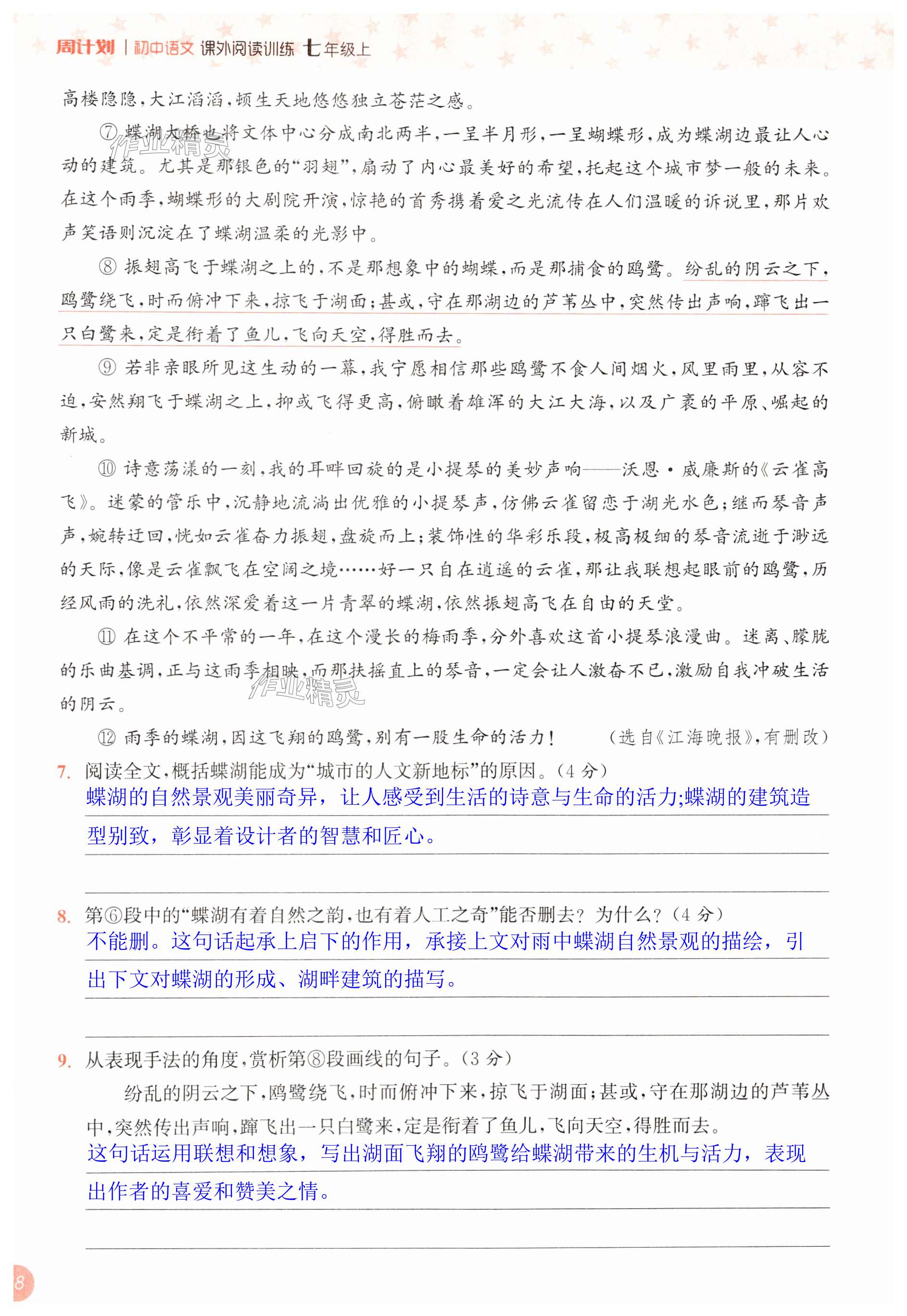 注:目前有些书本章节名称可能整理的还不是很完善,但都是按照顺序排列的,请同学们按照顺序仔细查找。练习册 2024年通城学典周计划课外阅读训练七年级语文上册人教版 答案主要是用来给同学们做完题方便对答案用的,请勿直接抄袭。