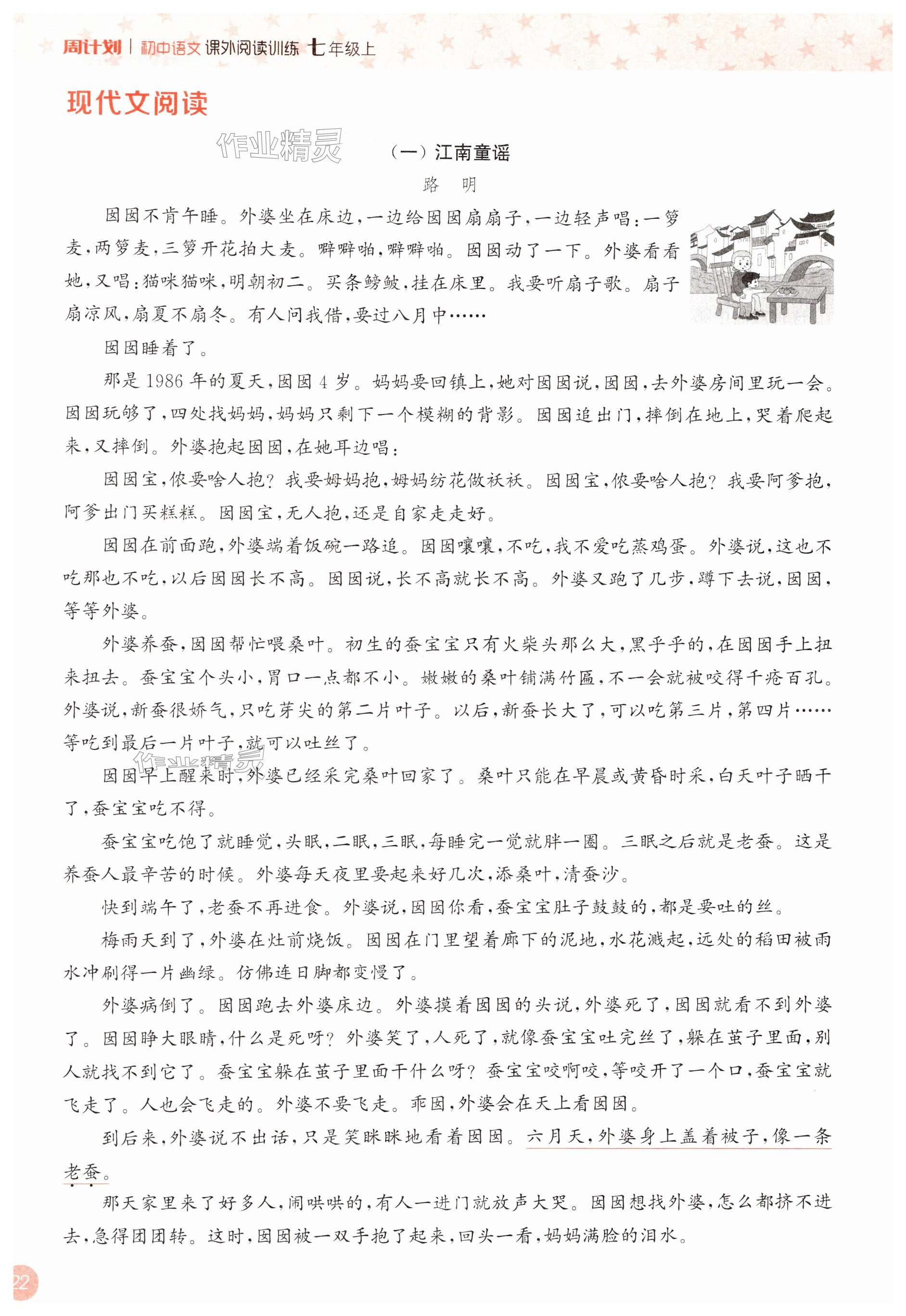 注:目前有些书本章节名称可能整理的还不是很完善,但都是按照顺序排列的,请同学们按照顺序仔细查找。练习册 2024年通城学典周计划课外阅读训练七年级语文上册人教版 答案主要是用来给同学们做完题方便对答案用的,请勿直接抄袭。